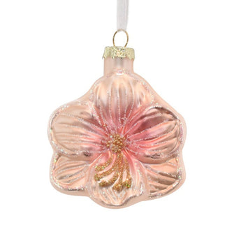Denne unikke julekugle i glas er formet som en smuk blomst i sart rosa, tilføjer et elegant og romantisk touch til juletræet.