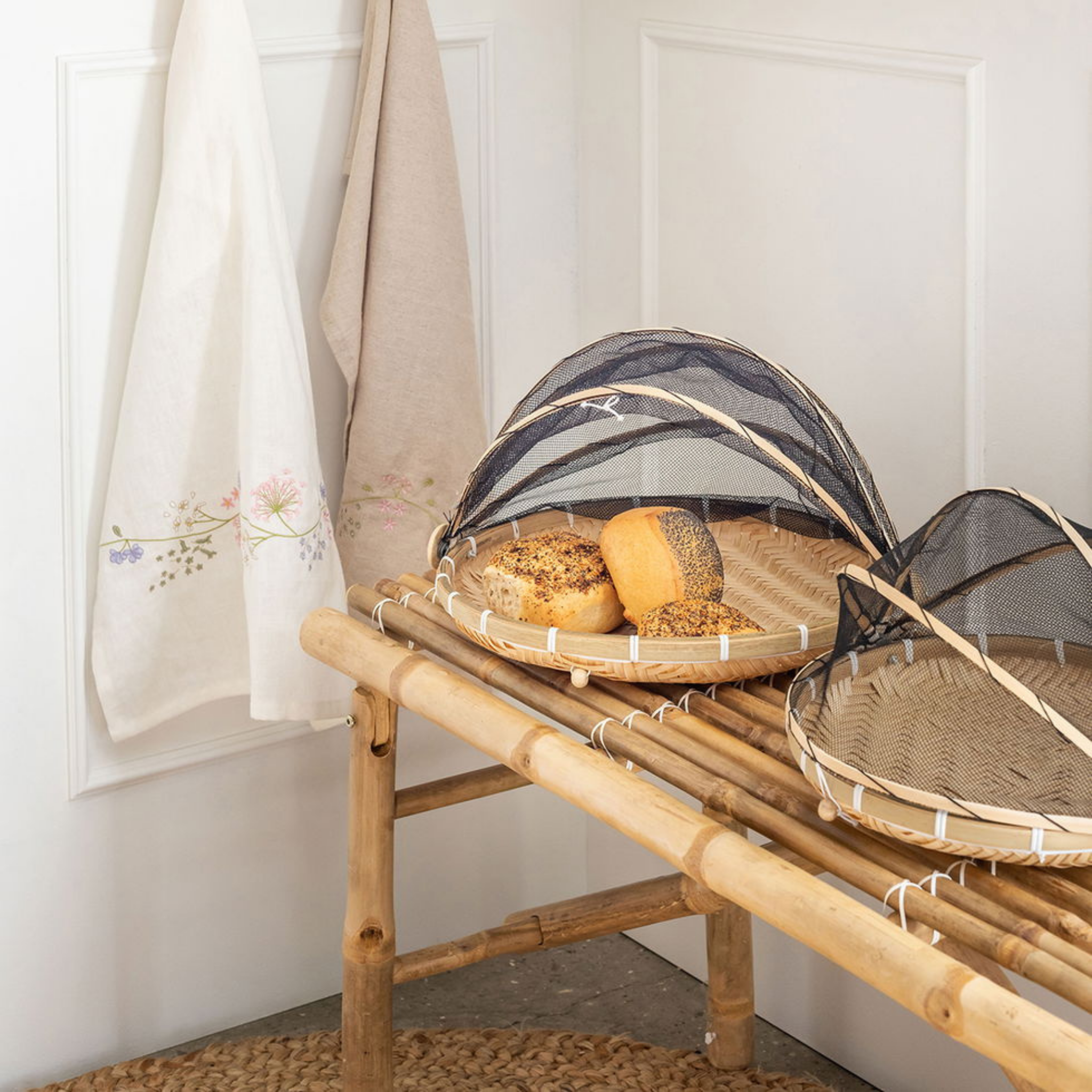 Bambus bakke med fluenet til beskyttelse af mad fra Speedtsberg.