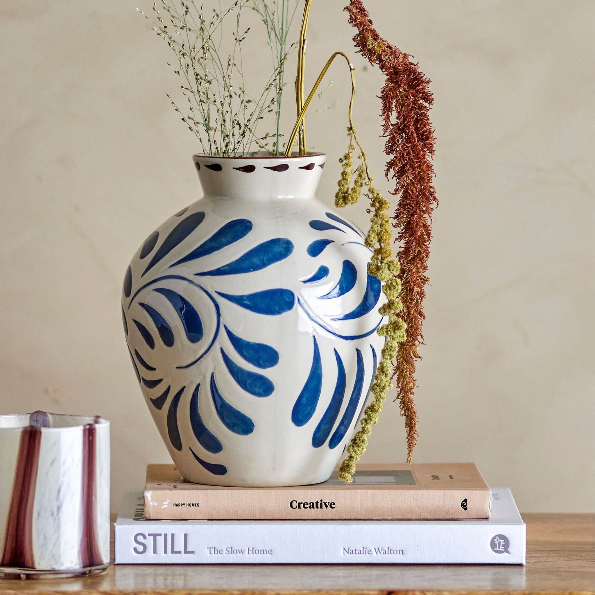 Heikki Vase i blå stentøj - Bloomingville