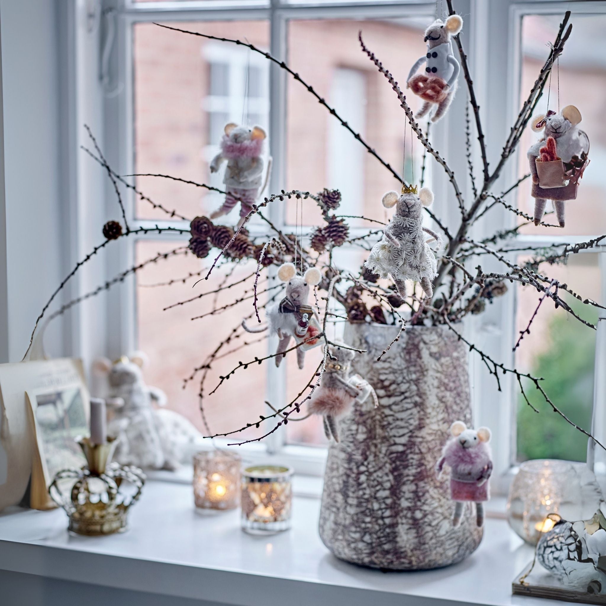 De små detaljer og deres fine outfits skaber en varm og hyggelig julestemning, der bringer smil frem hos både børn og voksne. Med den praktiske ophængssnor kan musene nemt hænges på en knage, en dekorativ gren eller indgå i en kreativ juleopstilling.