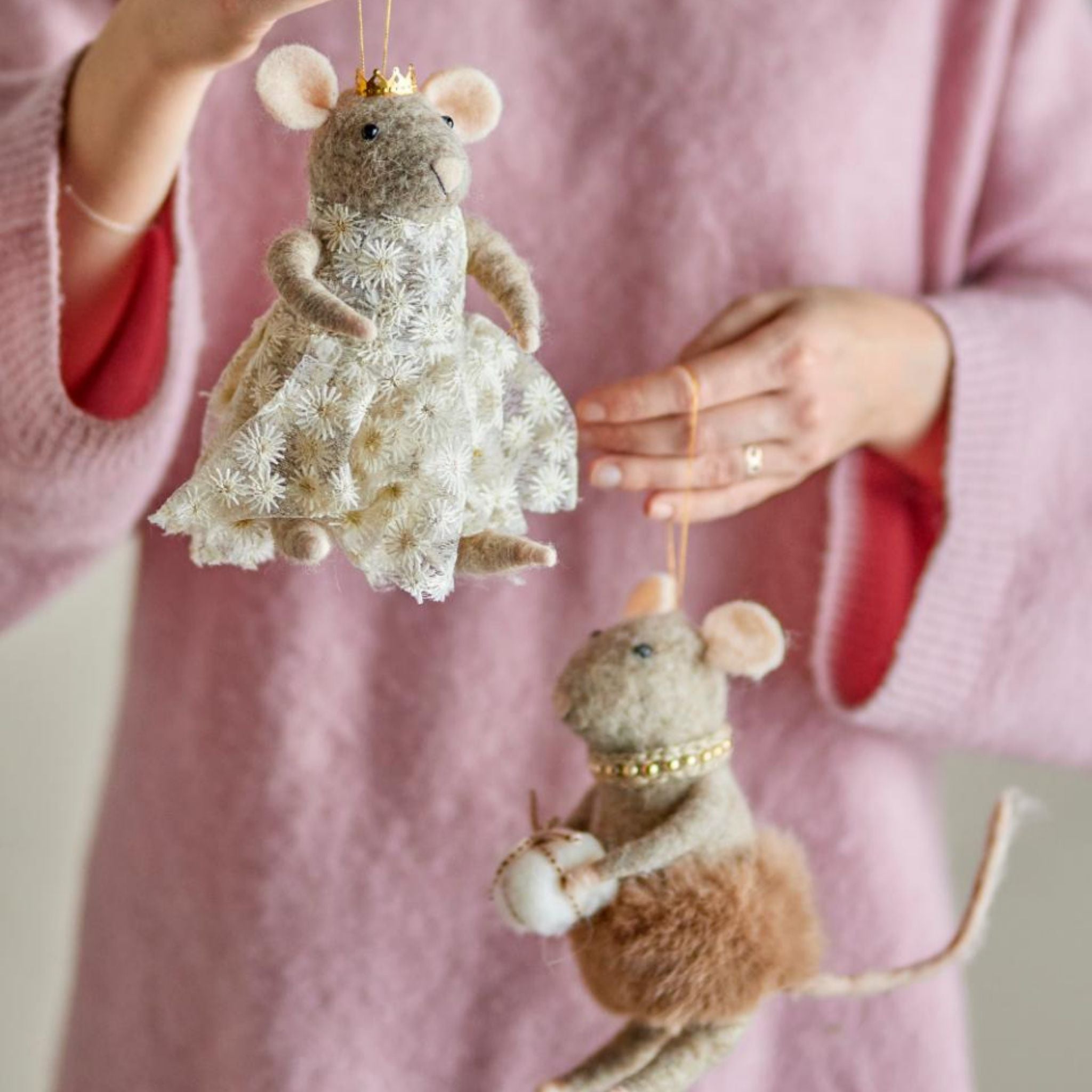 Filt mus fra Bloomingville er en festlig og charmerende dekoration bestående af to søde mus, filtet i blød uld.
