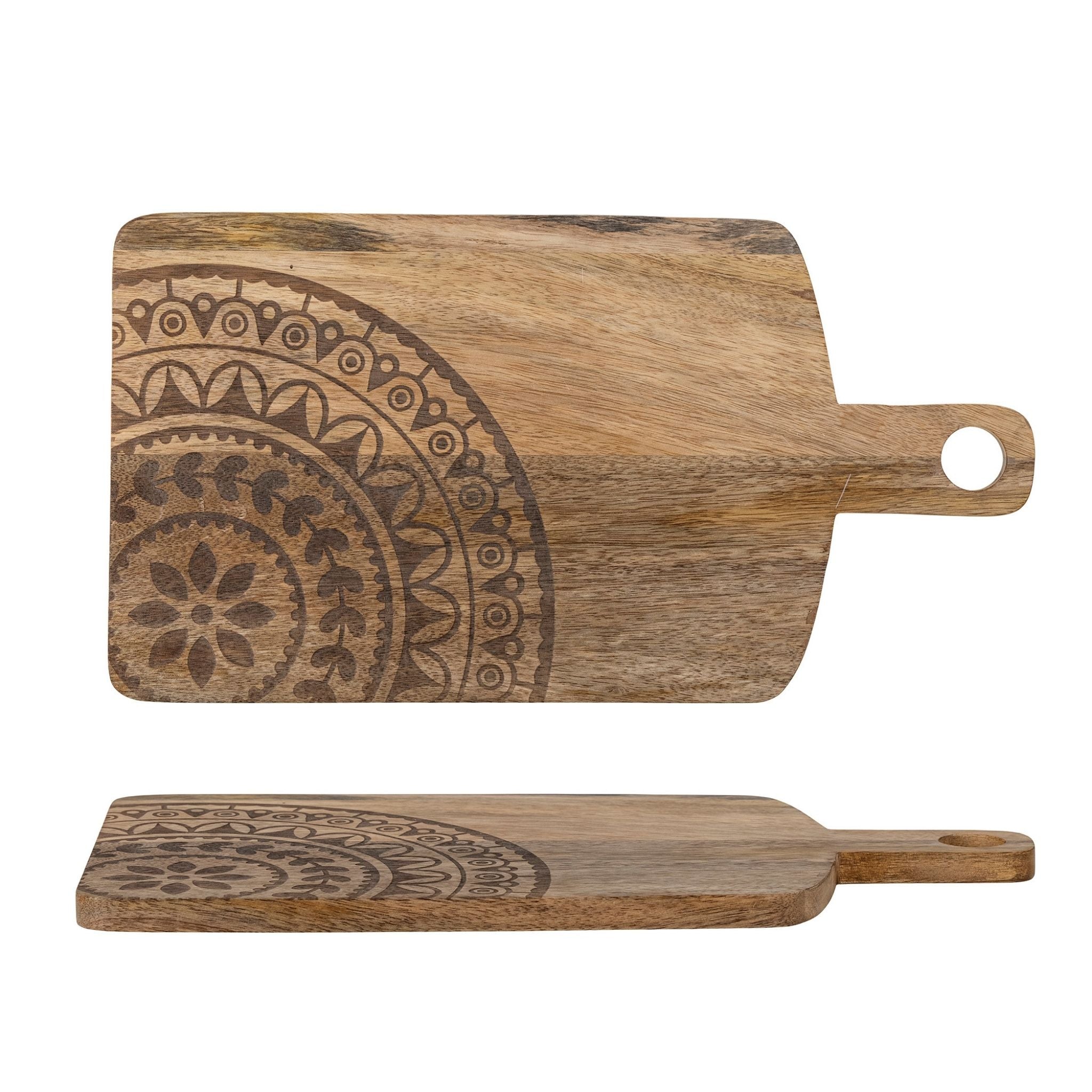 Brug brættet til at servere ost, tapas, friskbagte brød eller frugt – det skaber en smuk og indbydende præsentation på bordet. Mangotræets holdbarhed gør det også velegnet som skærebræt eller som en dekorativ base til krydderier og olier i køkkenet.