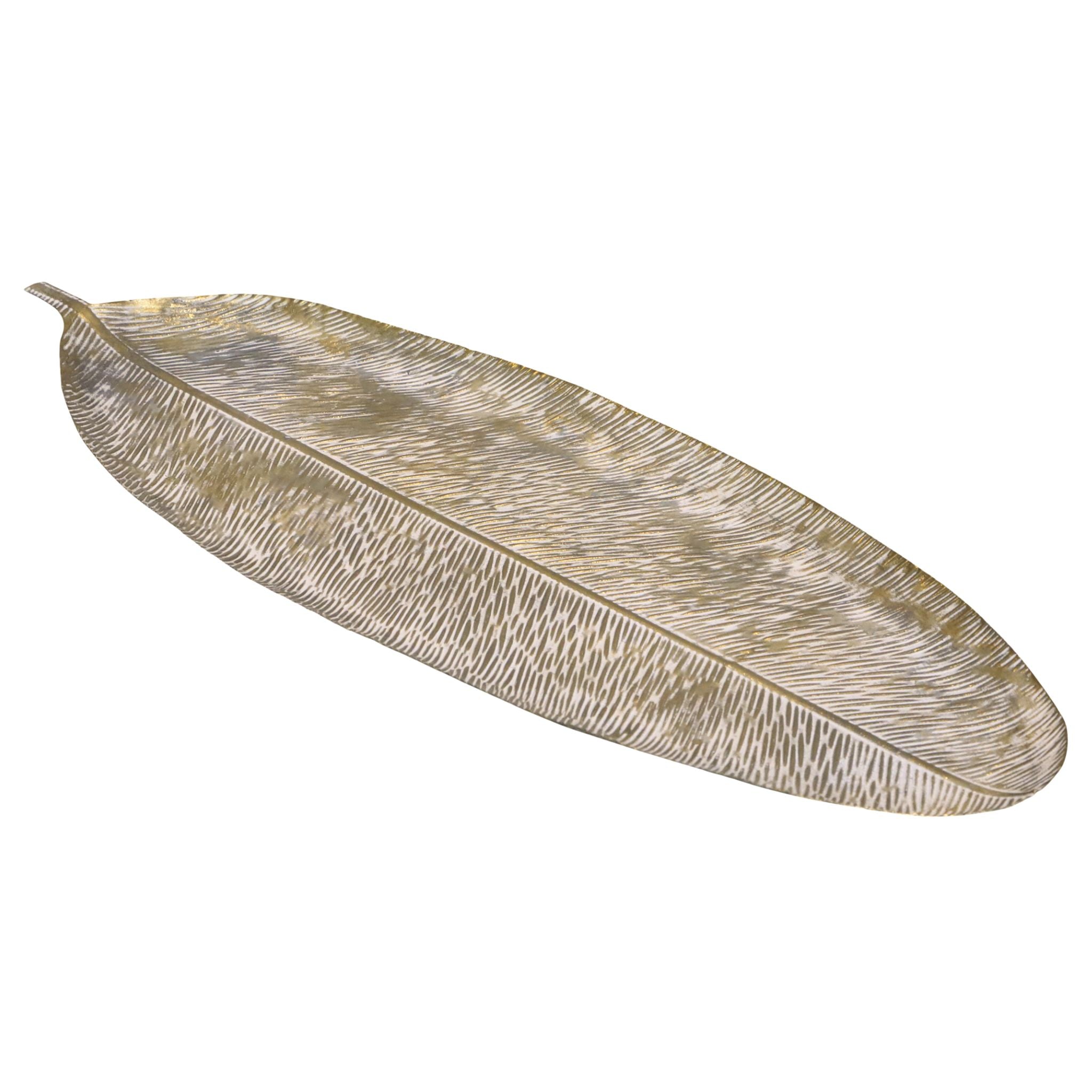 Dette smukke dekorationsfad formet som et blad bringer naturens elegance ind i din indretning. Fadet har en eksklusiv antique champagne-finish, som giver det et sofistikeret og stilfuldt udtryk - Perfekt som centerpiece på spisebordet, sofabordet eller i vindueskarmen.
