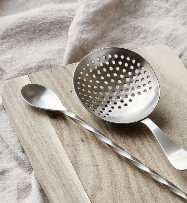 Nicolas Vahé cocktail sæt som indeholder en lang ske og si.