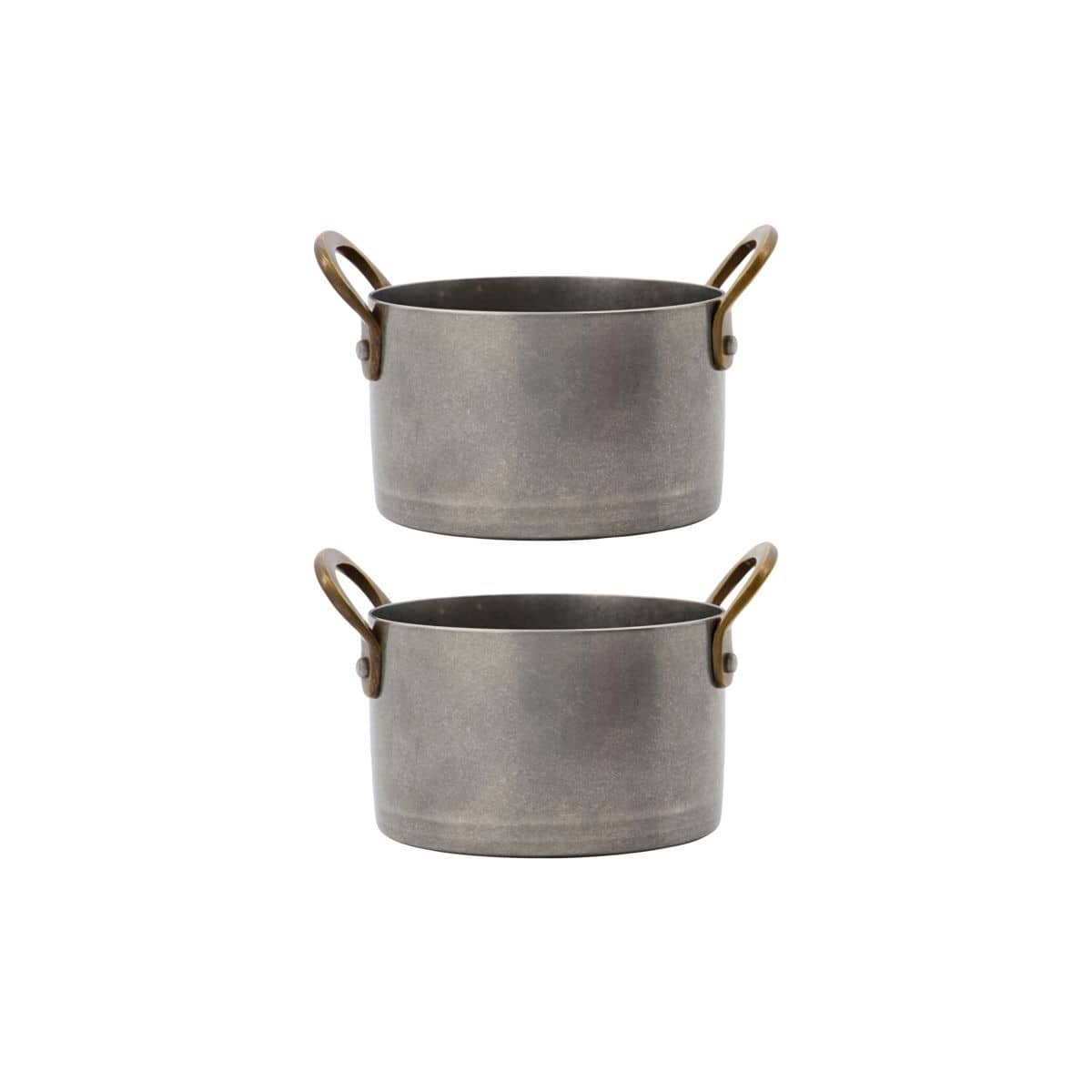 Giv dine gæster en uforglemmelig madoplevelse med dette sæt med 2 mini-gryder. De hedder Presentation og er designet af Nicolas Vahé i rustfrit stål med messinghåndtag. Et uformelt, men stilfuldt valg til din borddækning. Brug gryderne til at servere lækre måltider, såsom gryderetter, i en pubagtig atmosfære. Præsentationen er lige så vigtig for den samlede oplevelse som smagen. Med disse miniaturegryder skaber du det perfekte udtryk omkring dine retter. Maks. temperatur: 250 °C. Velegnet til elektriske ovne og varmluftsovne. Velegnet til elektriske kogeplader og gasblus, men ikke til induktionskogeplader. Skal vaskes op i hånden. Bemærk, at misfarvning kan forekomme over tid, når genstanden udsættes for varme. Dette er almindeligt for rustfrit stål, men har ingen indflydelse på sikkerhed eller ydeevne. H: 7cm, D: 10cm
