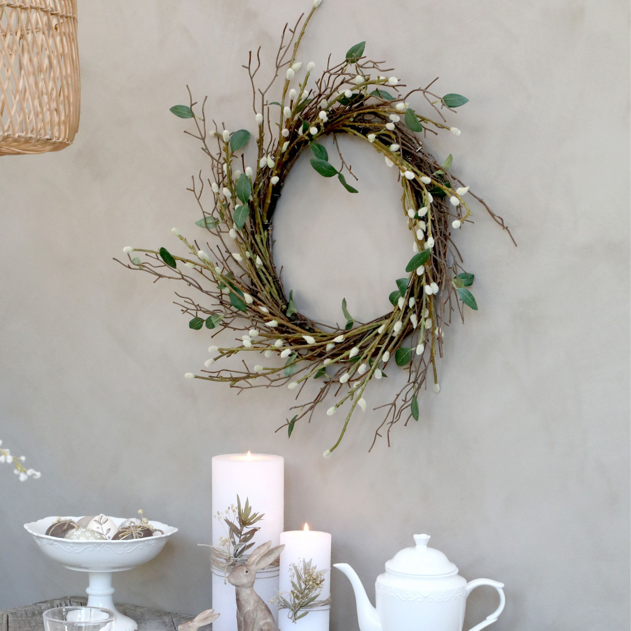 Smuk og dekorativ gren krans med kunstige pilegrene fra Chic Antique.