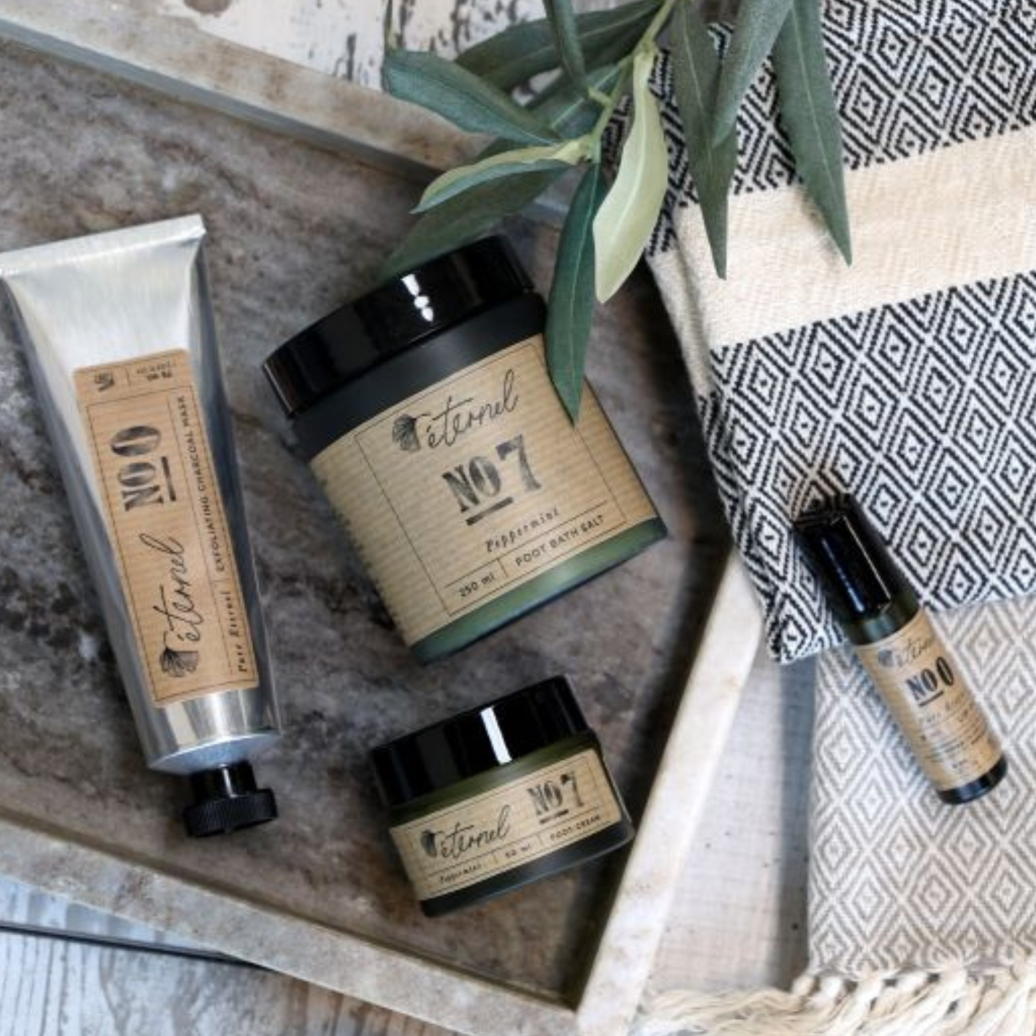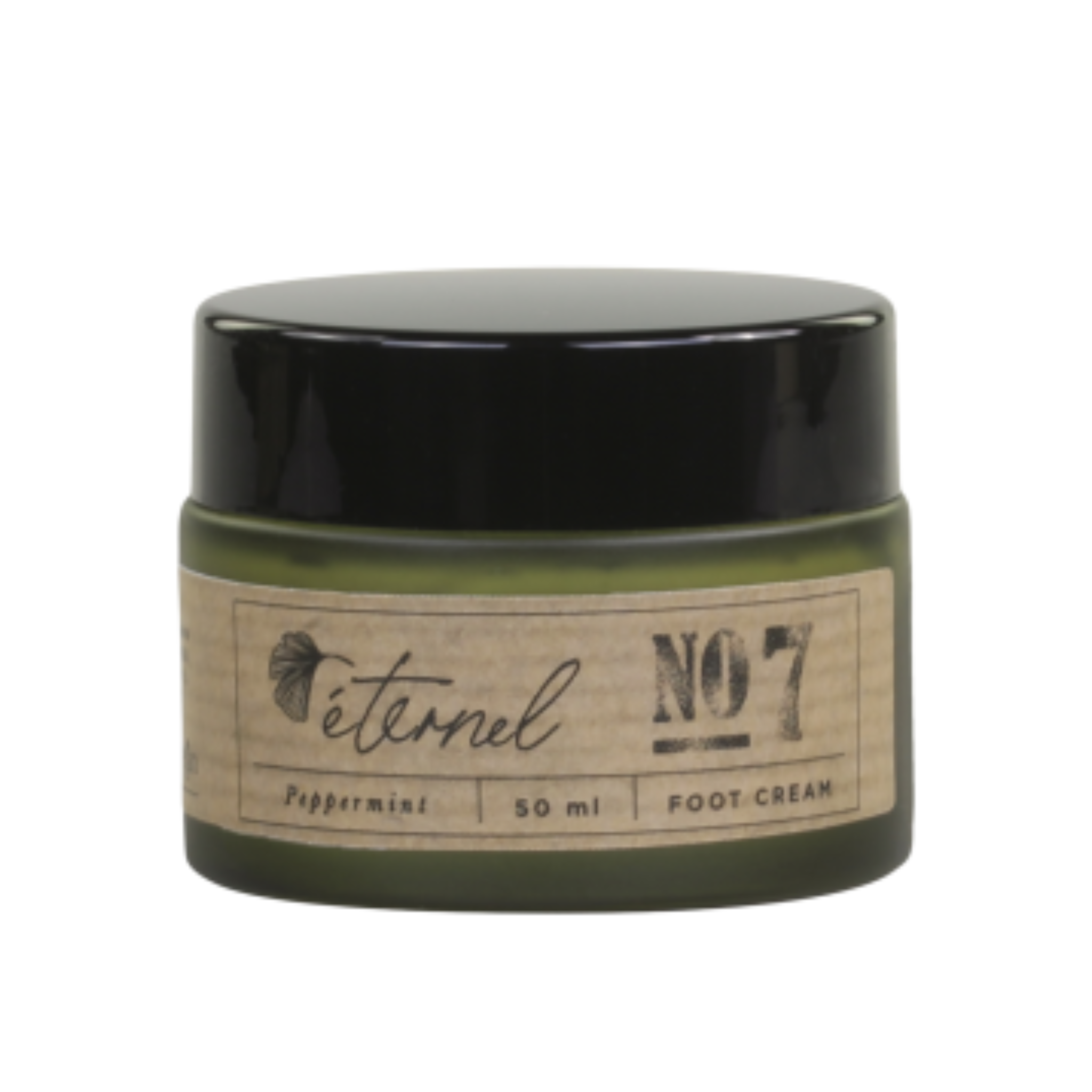 Nærende og fugtgivende Éternel Fodcreme er en creme, der indeholder glykolsyre og carbamid, som har en mild peelingeffekt, samt fugtgivende og blødgørende mandel- og sesamolie. Cremen er holdbar og absorberes hurtigt, så huden efterlades velplejet og med en dejlig duft.