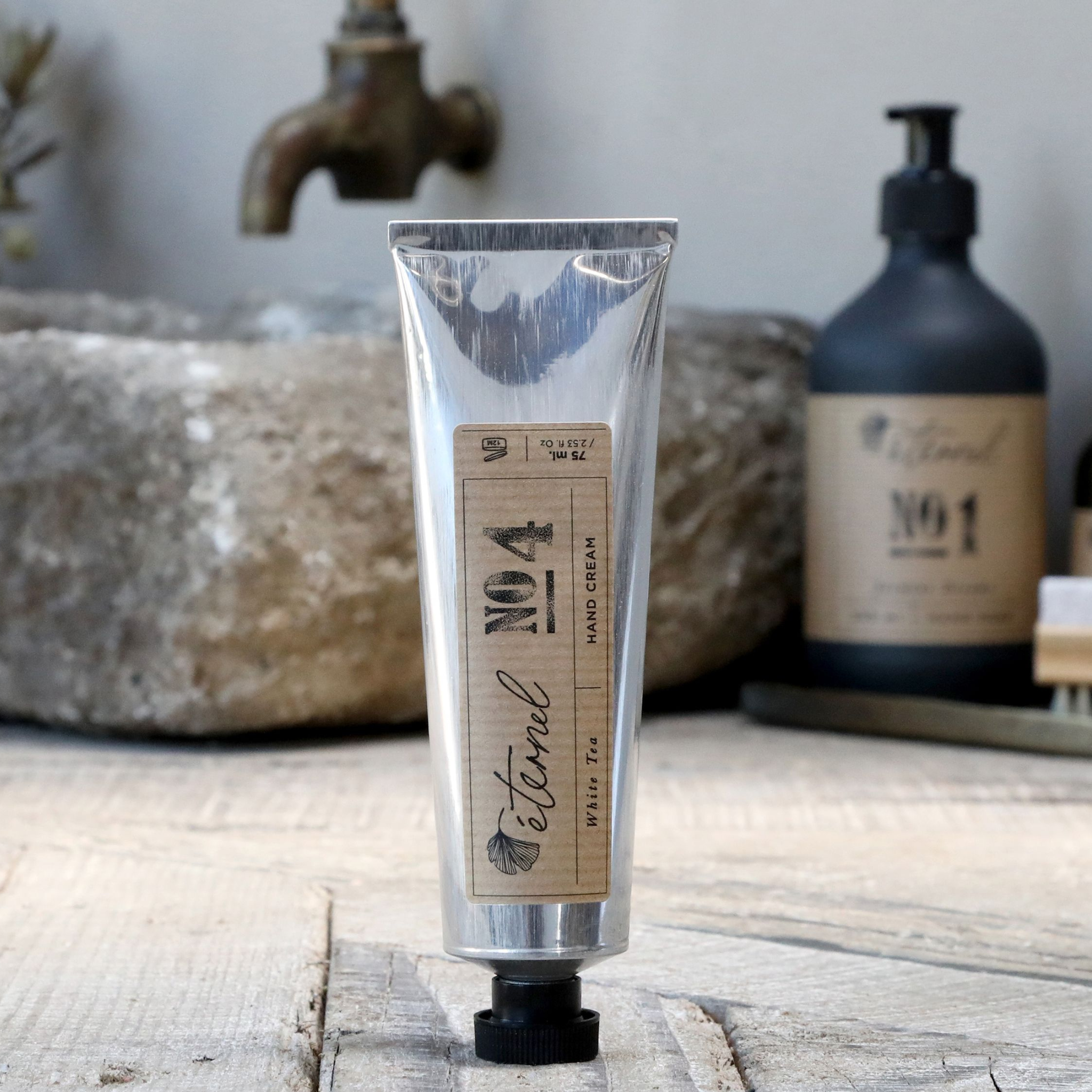 Vegansk håndcreme med dejlig duft af White Tea med noter af citron, mandarin, nellike og cedertræ. En nærende håndcreme der efterlader dine hænder bløde og velduftende, uden at være fedtede. Denne håndcreme kommer i en lille praktisk tube, som du nemt kan have med i tasken og på farten.