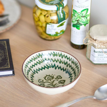 Heikki Skålen fra Bloomingville er et must-have til dit spisebord med sit betagende, håndmalede mønster i smukke grønne nuancer.