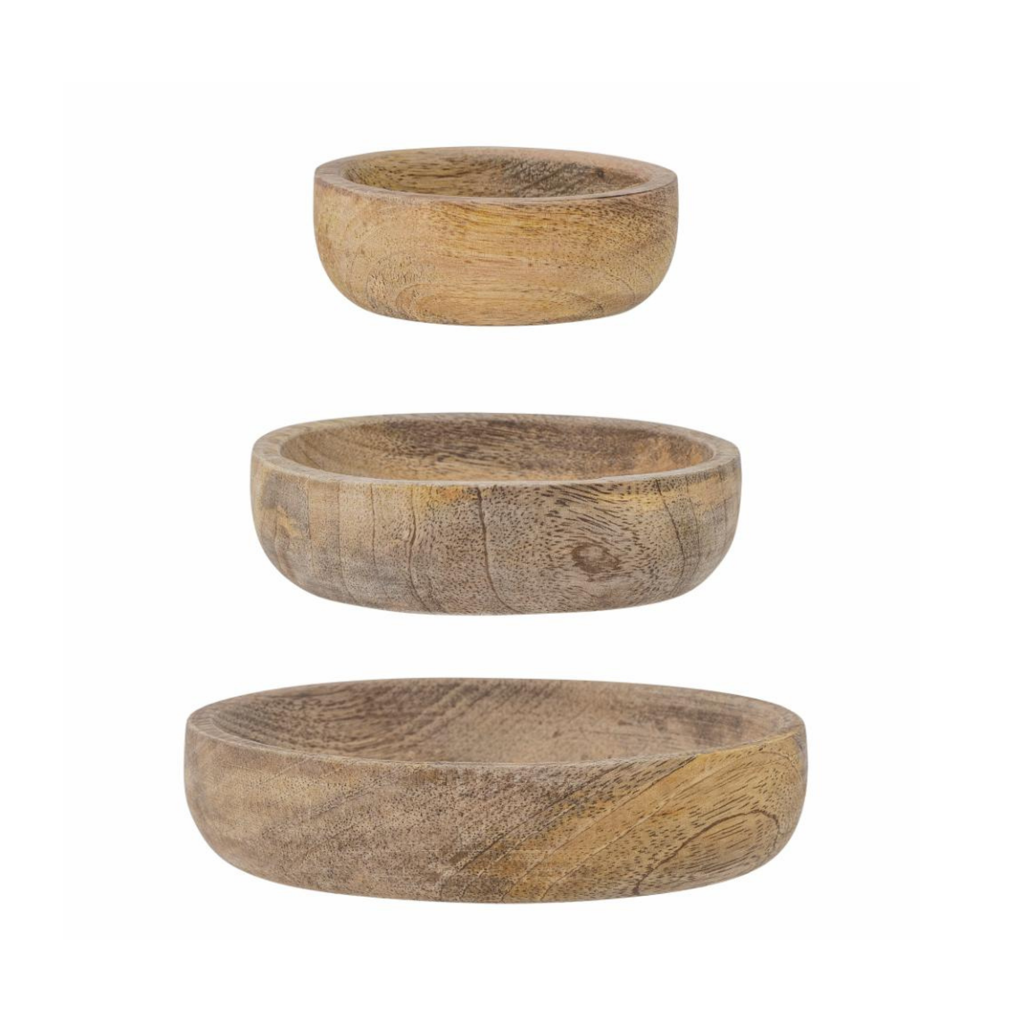 Joana Skålene fra Creative Collection er et smukt sæt af tre skåle, alle i forskellige størrelser, lavet af naturligt mangotræ. De varme trænuancer tilfører et elegant, organisk præg til din køkkenindretning og skaber en stemningsfuld borddækning. Skålene er perfekte til at præsentere dine yndlingssnacks på en stilfuld og indbydende måde.