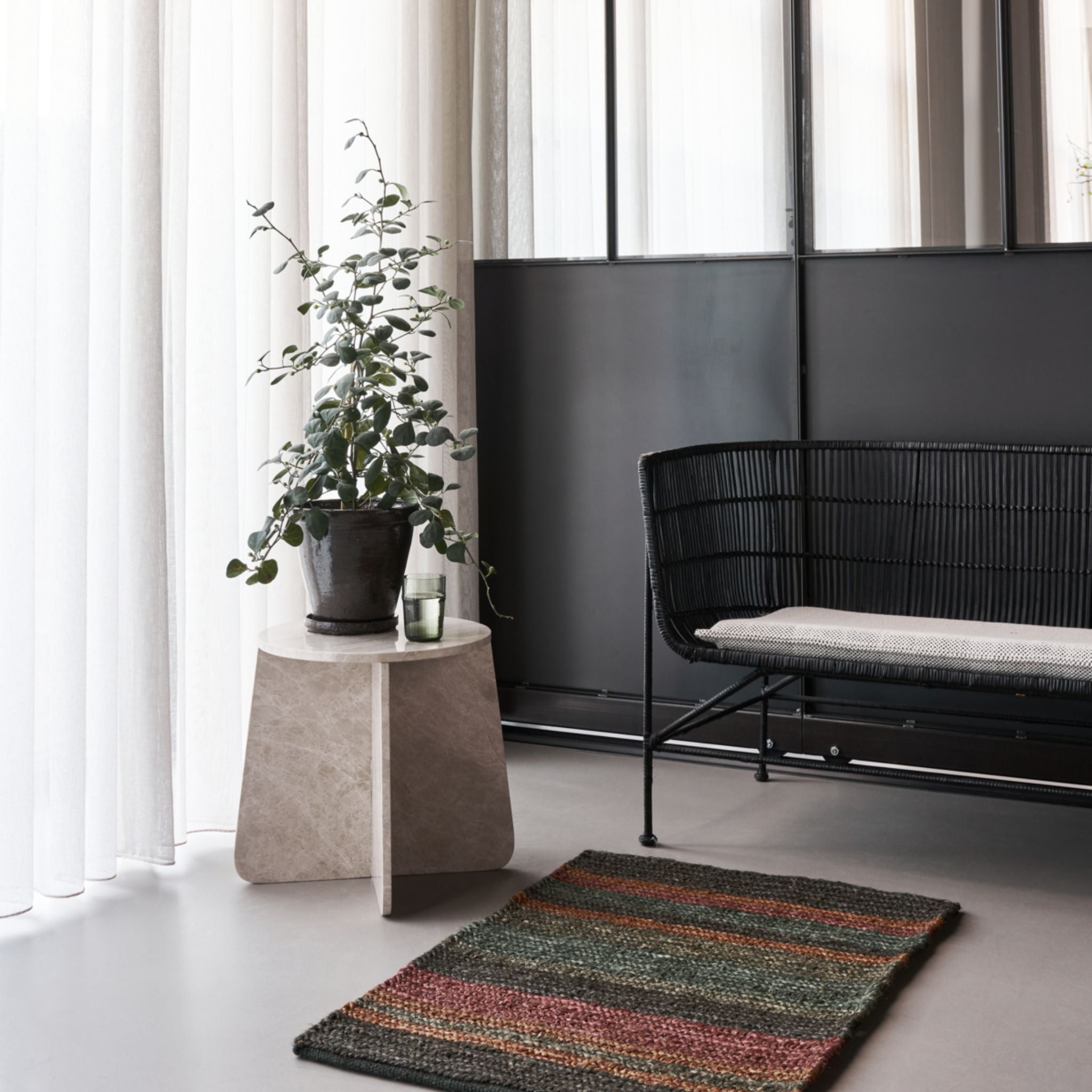 Designet med slidstærk hamp, er det ideelt til områder med høj trafik, såsom entréen eller stuen. De multifarvede striber tilfører varme og skaber en harmonisk balance mellem det iøjnefaldende og det subtile.