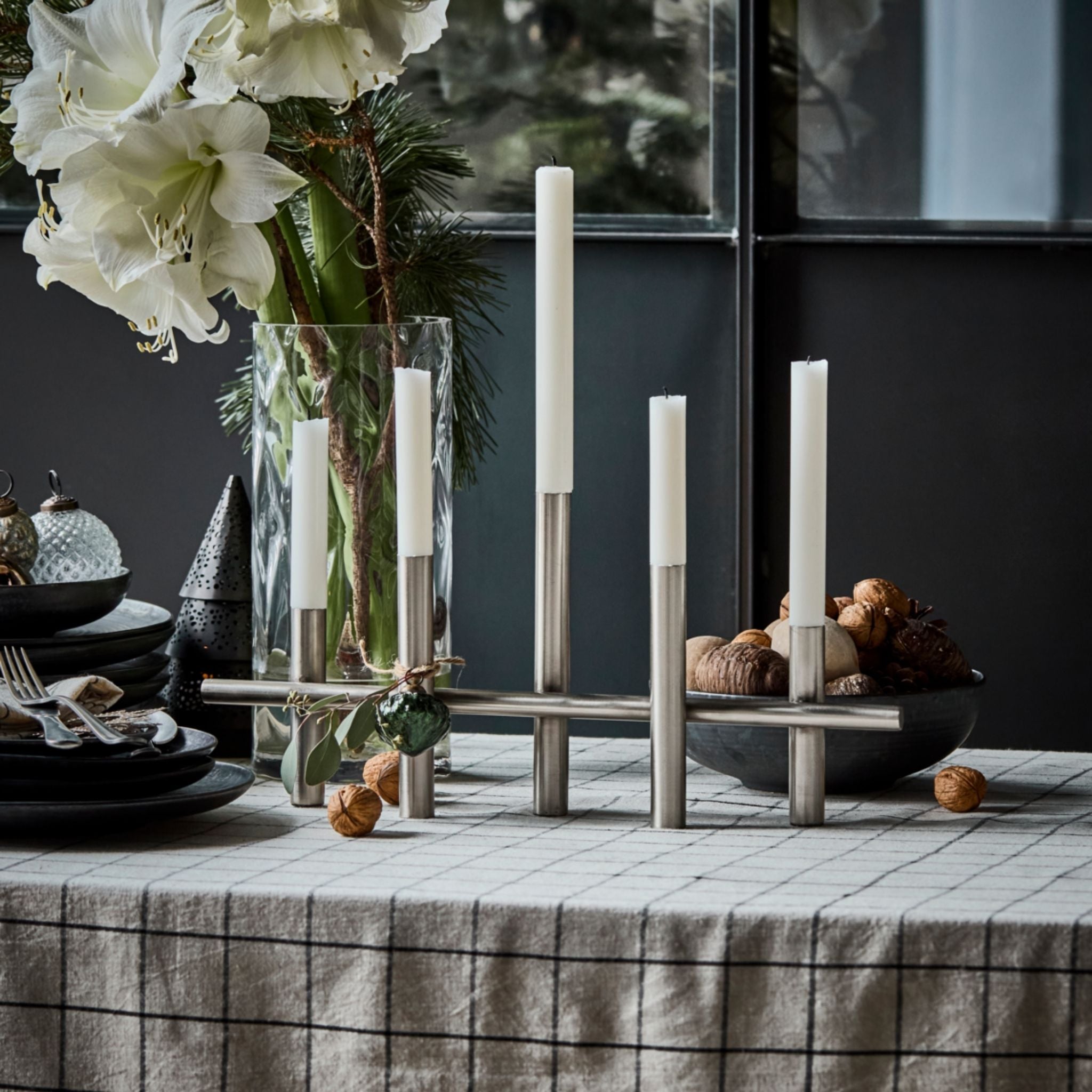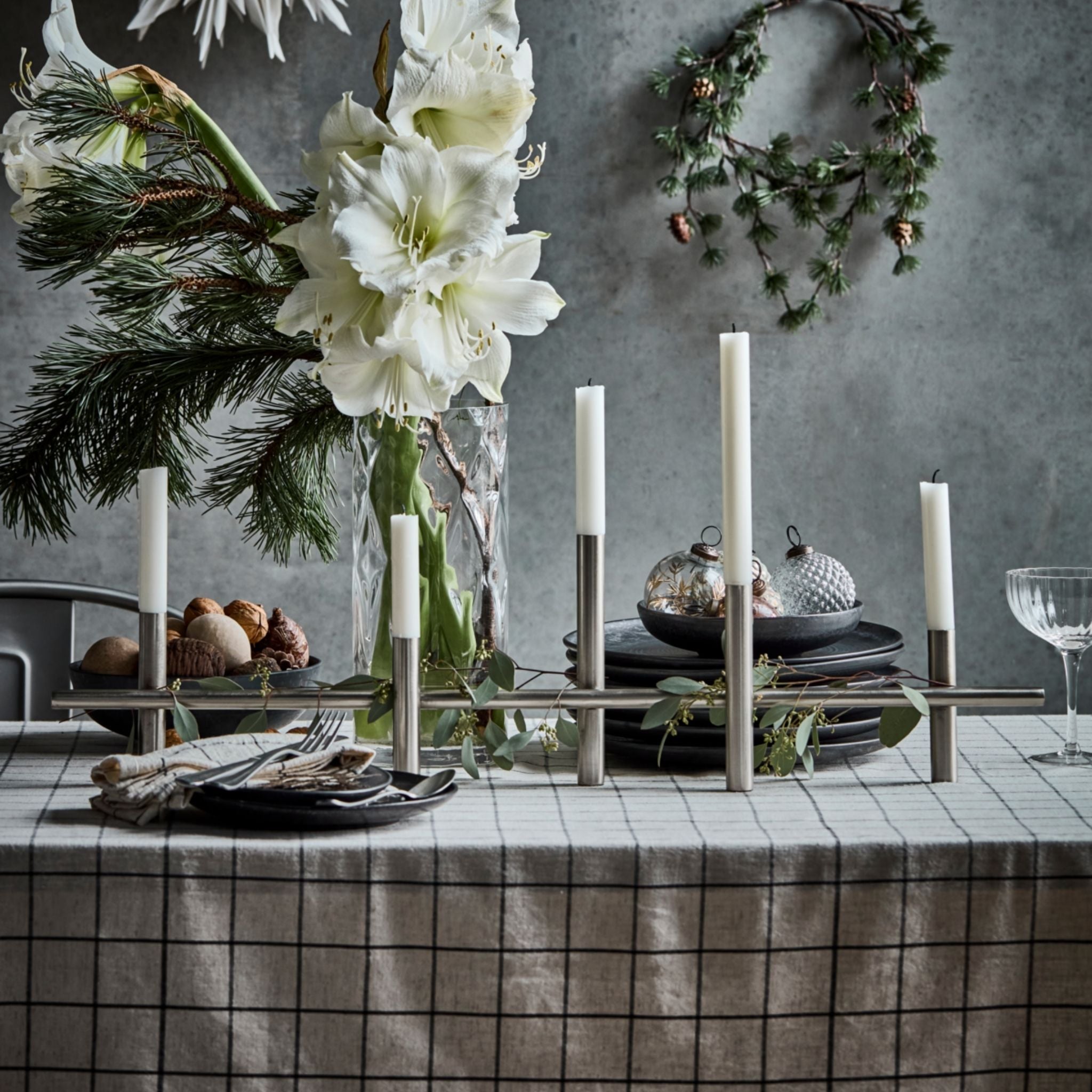 Lad denne smukke lysestage i jern med antik sølvfinish blive centrum for din juledekoration. Håndlavet og helt unik tilfører den et stilfuldt, moderne touch, der løfter din indretning. Passer til stearinlys med en diameter på Ø2,2 cm. Dekorer den med gran, lys eller små ornamenter for at skabe et personligt og stemningsfuldt udtryk.