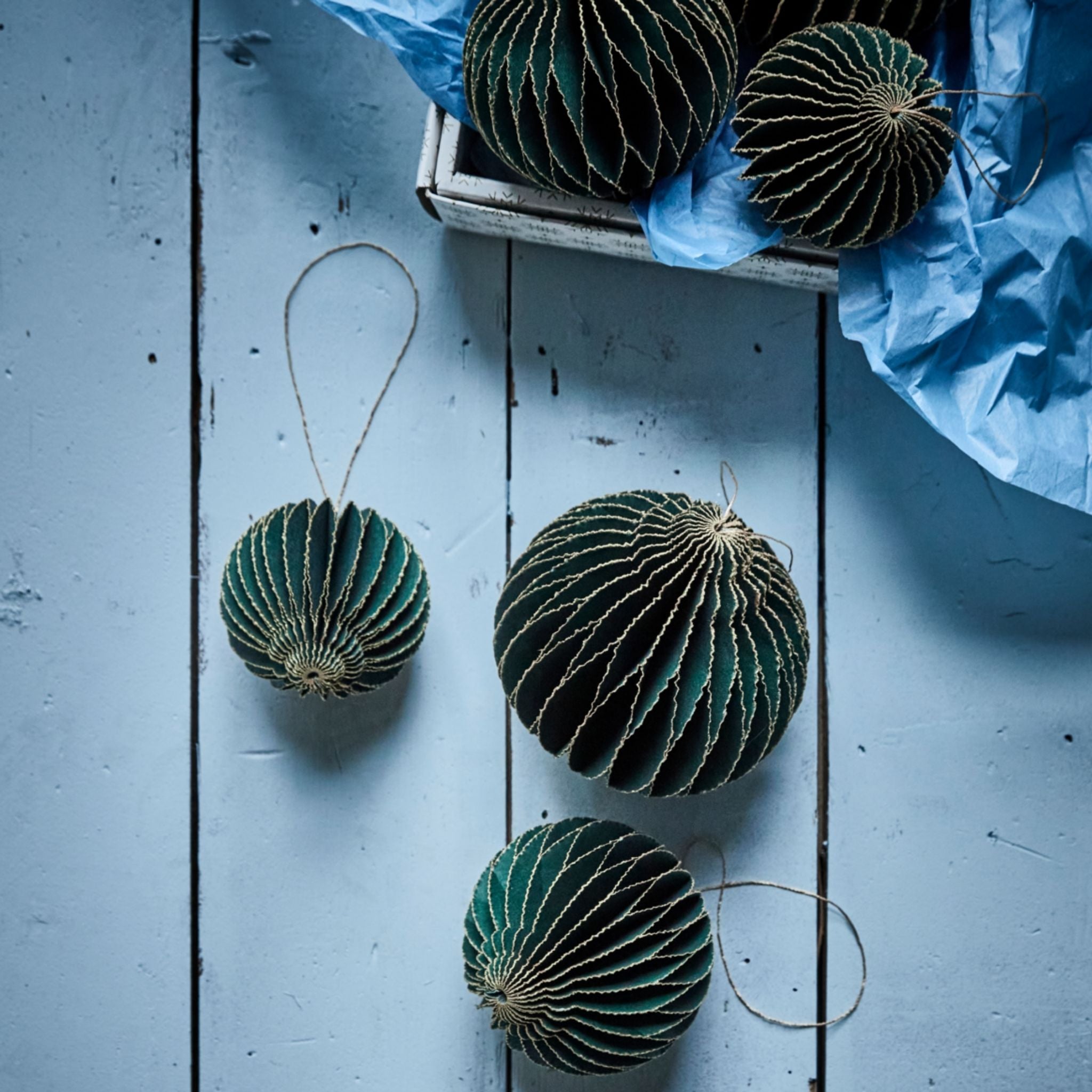 Tilføj et unikt og fortryllende præg til din juleudsmykning med disse smukke håndlavede papirs ornamenter i en dybgrøn farve.