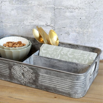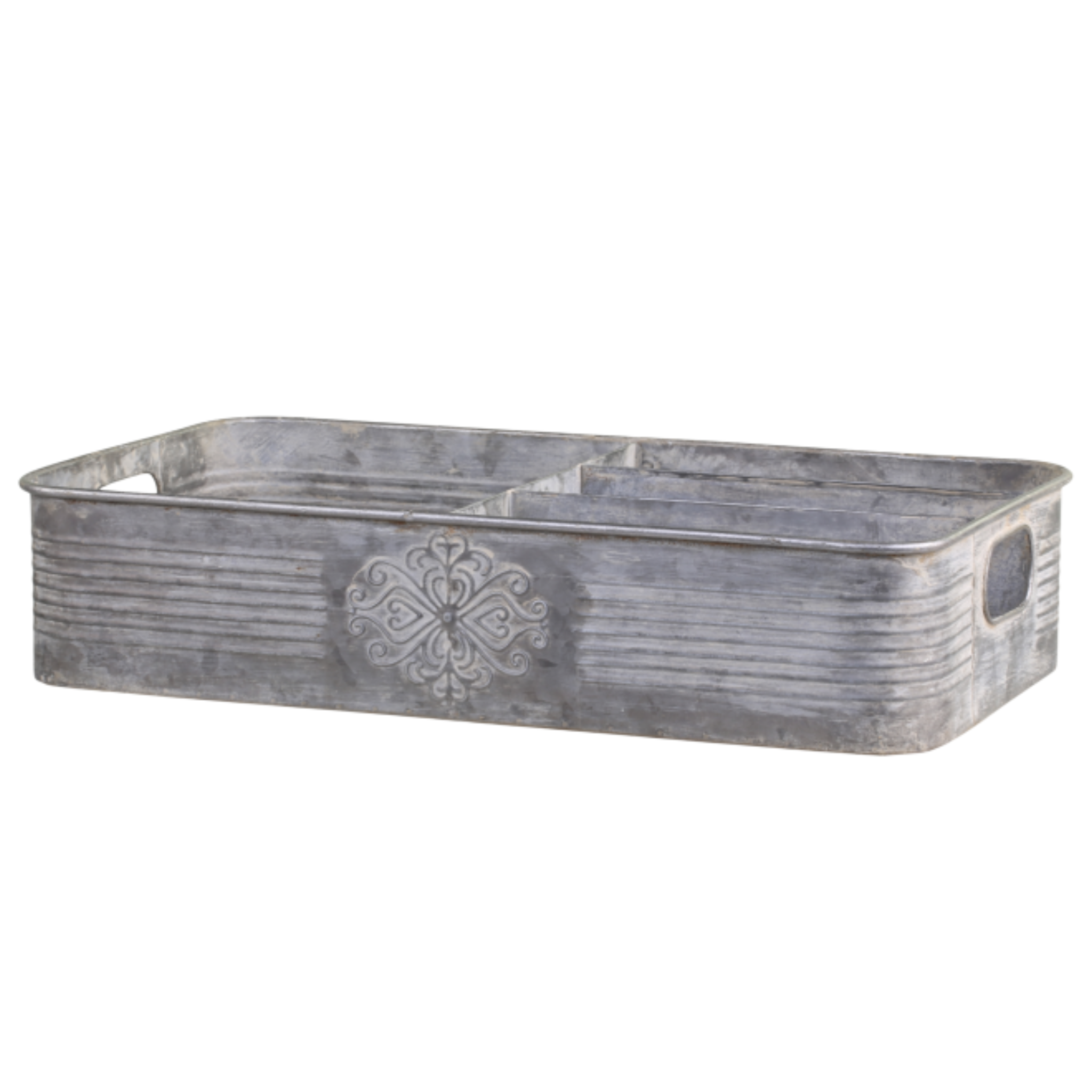Skøn zink bakke med 4 rum fra Chic Antique til opbevaring.