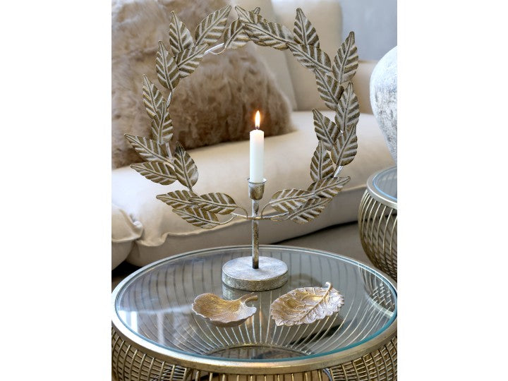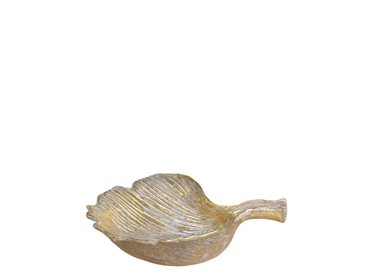Fadet er udført i en antik messingfarve, der giver det en vintage og tidløs æstetik. Lavet af resin, er det holdbart og skabt til at stå smukt i dit rum i lang tid fremover. Dets design som et bredt blad tilfører en naturlig og organisk fornemmelse til indretningen.