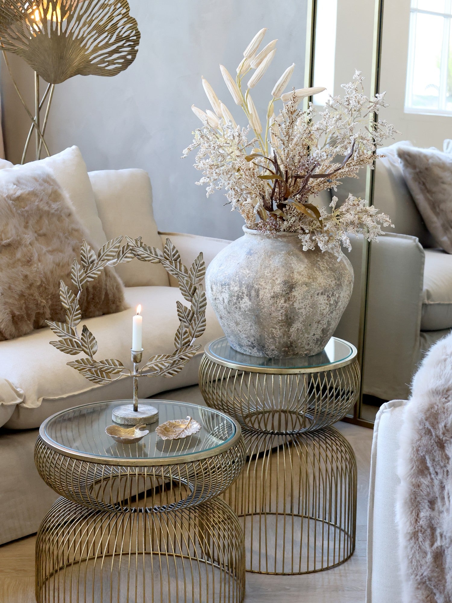 Dette lille dekorationsfad fra Chic Antique er ikke kun en praktisk løsning til opbevaring, men også en æstetisk tilføjelse til din indretning. Med sin antikke messingfarve og subtile naturlige form formår det at tilføje skønhed og karakter til ethvert hjørne af dit hjem.
