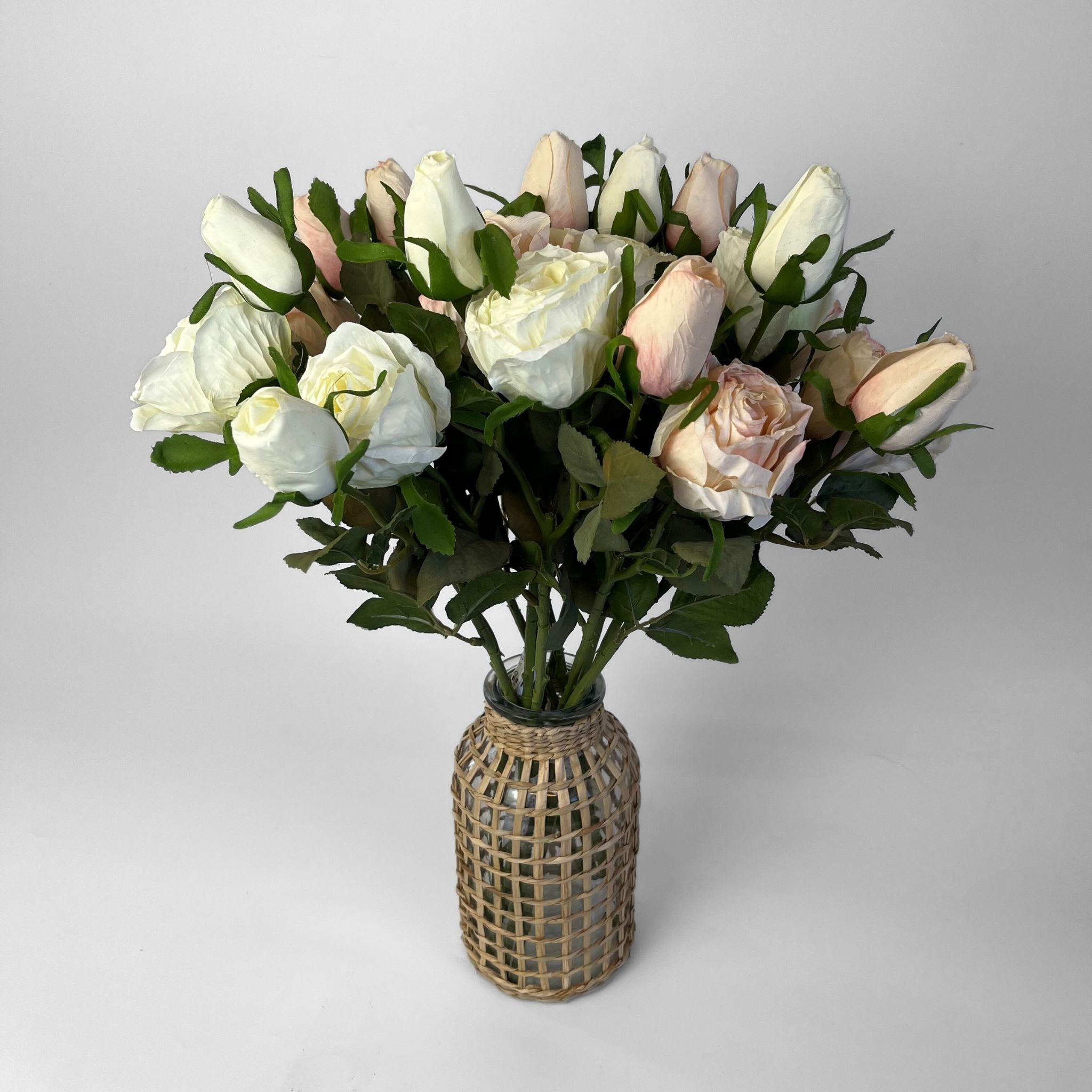 Pynt op den disse skønne roser, enten enkeltvis eller flere samlet i en buket. Fås i en sart fersken farve og i en romantisk hvid.