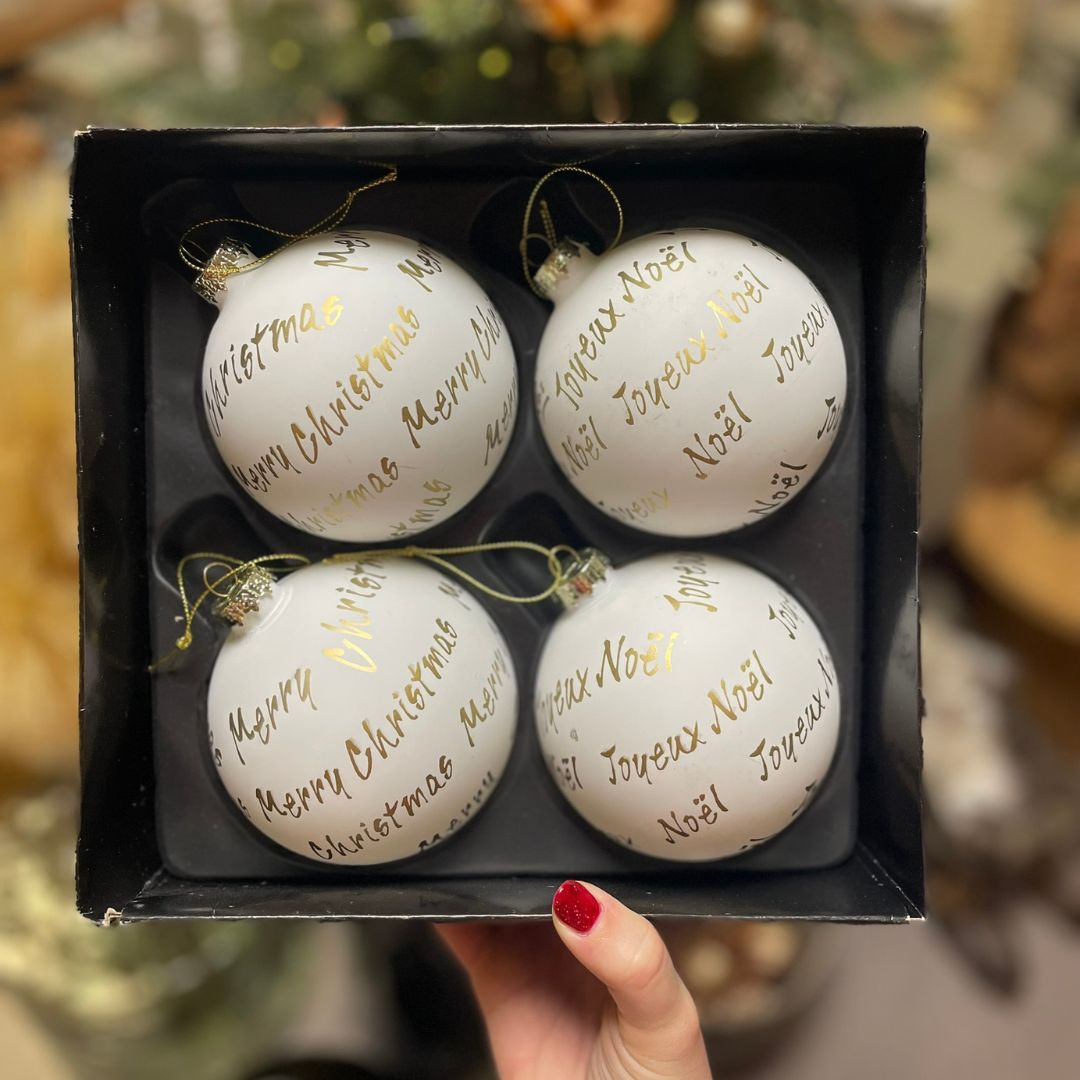 J-Line Julekugle med guldfarvet skrift - Sæt med 4 stk