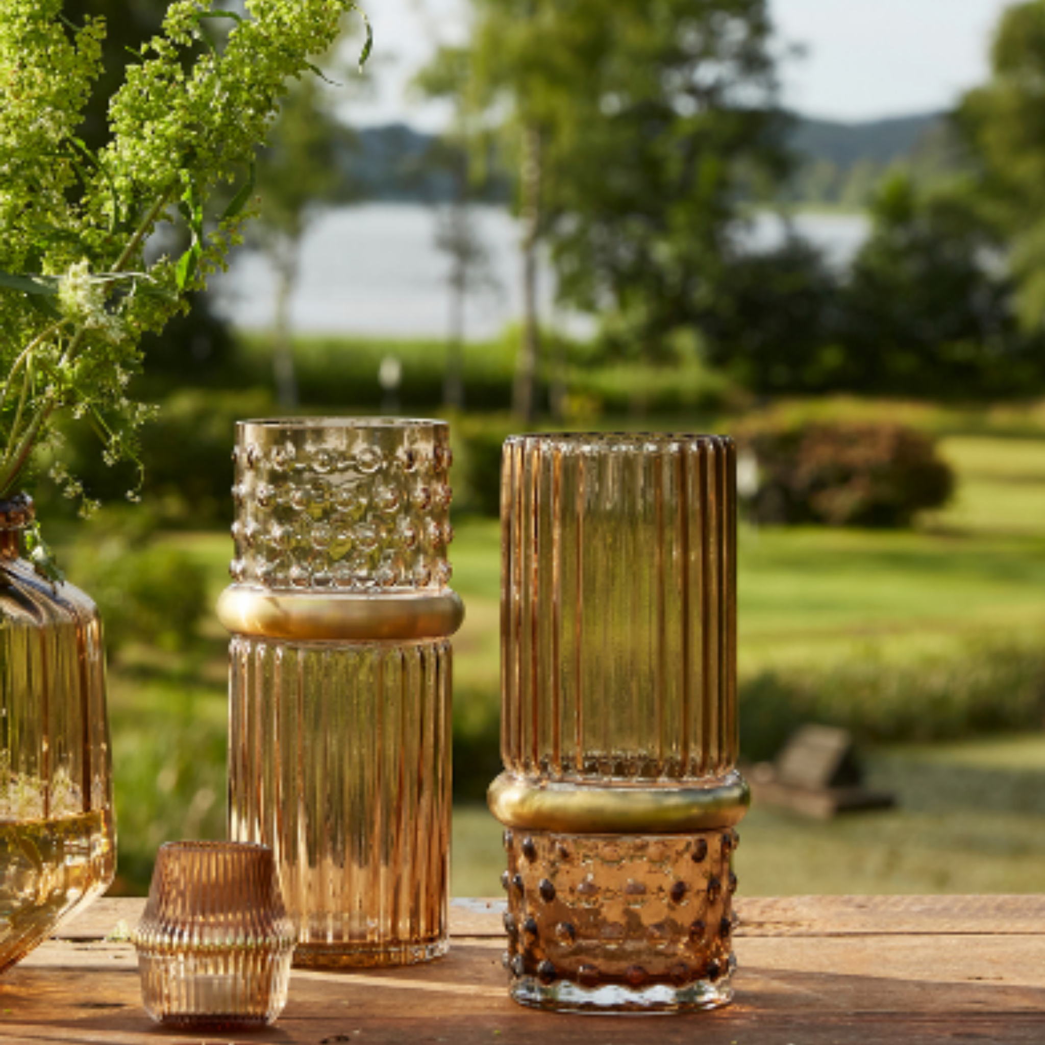 Brug vasen til friske eller evighedsblomster eller lad vasen stå som den er og pynte i rummet uden indhold. Vaserne er i brunt glas og har et flot og unikt design. Kan også bruges på værelset eller badeværelset til opbevaring.