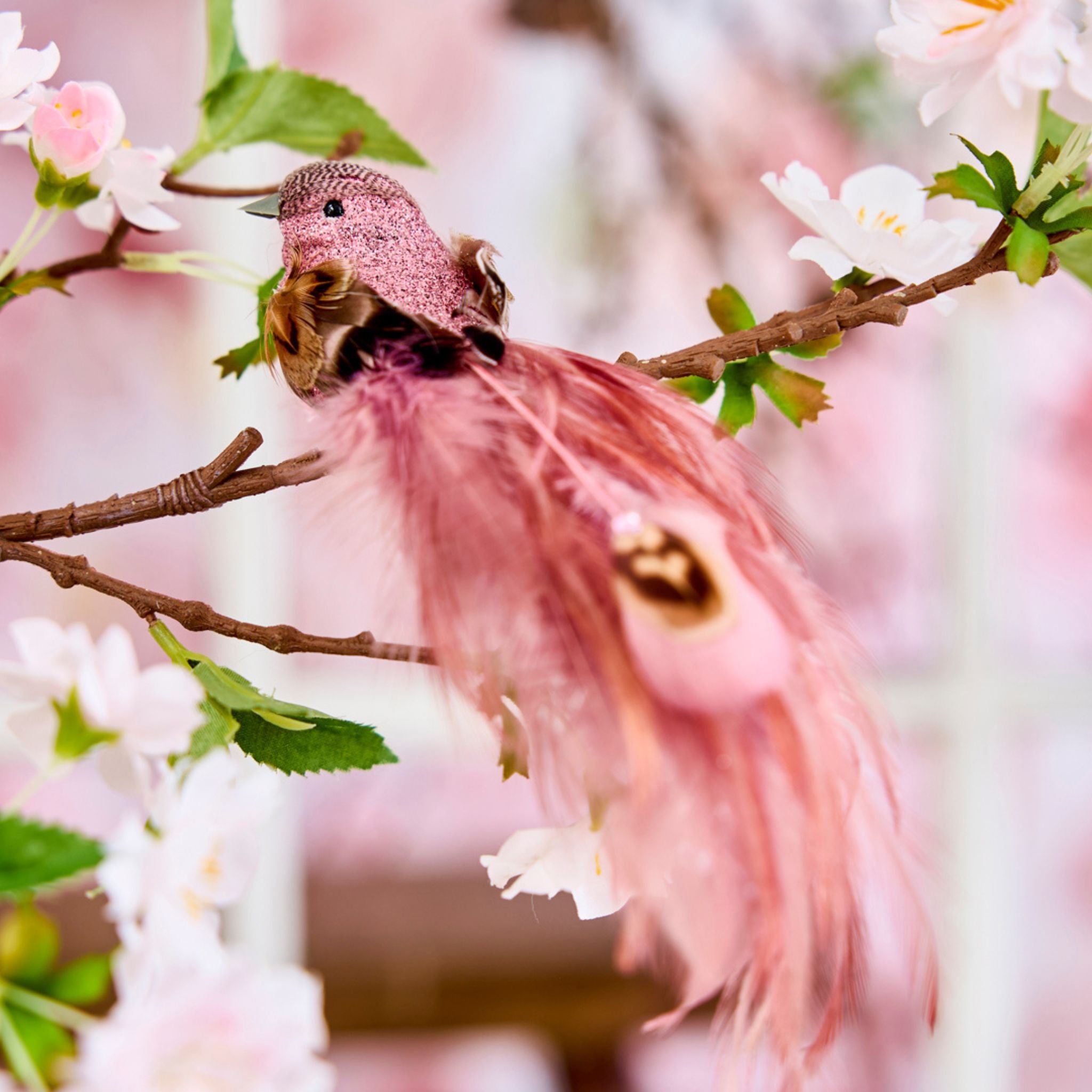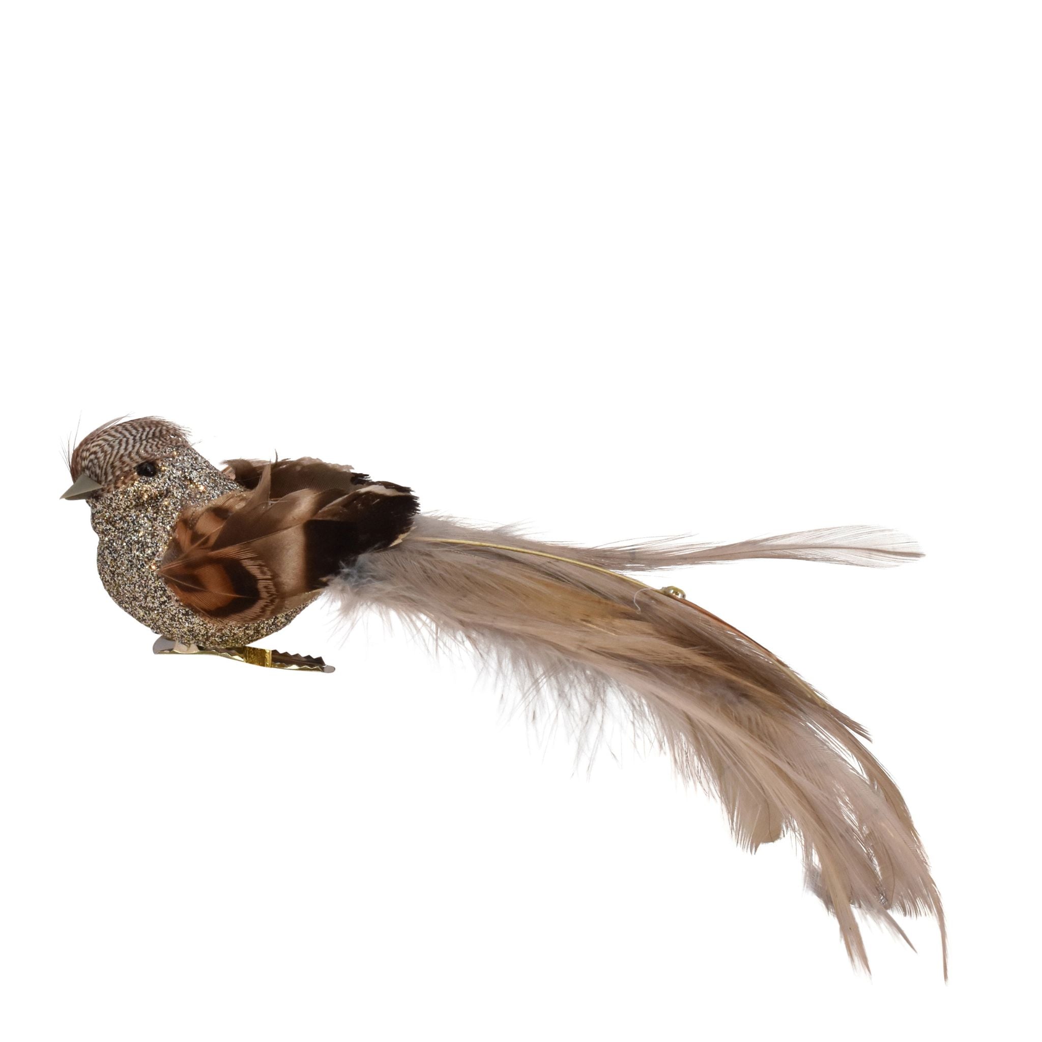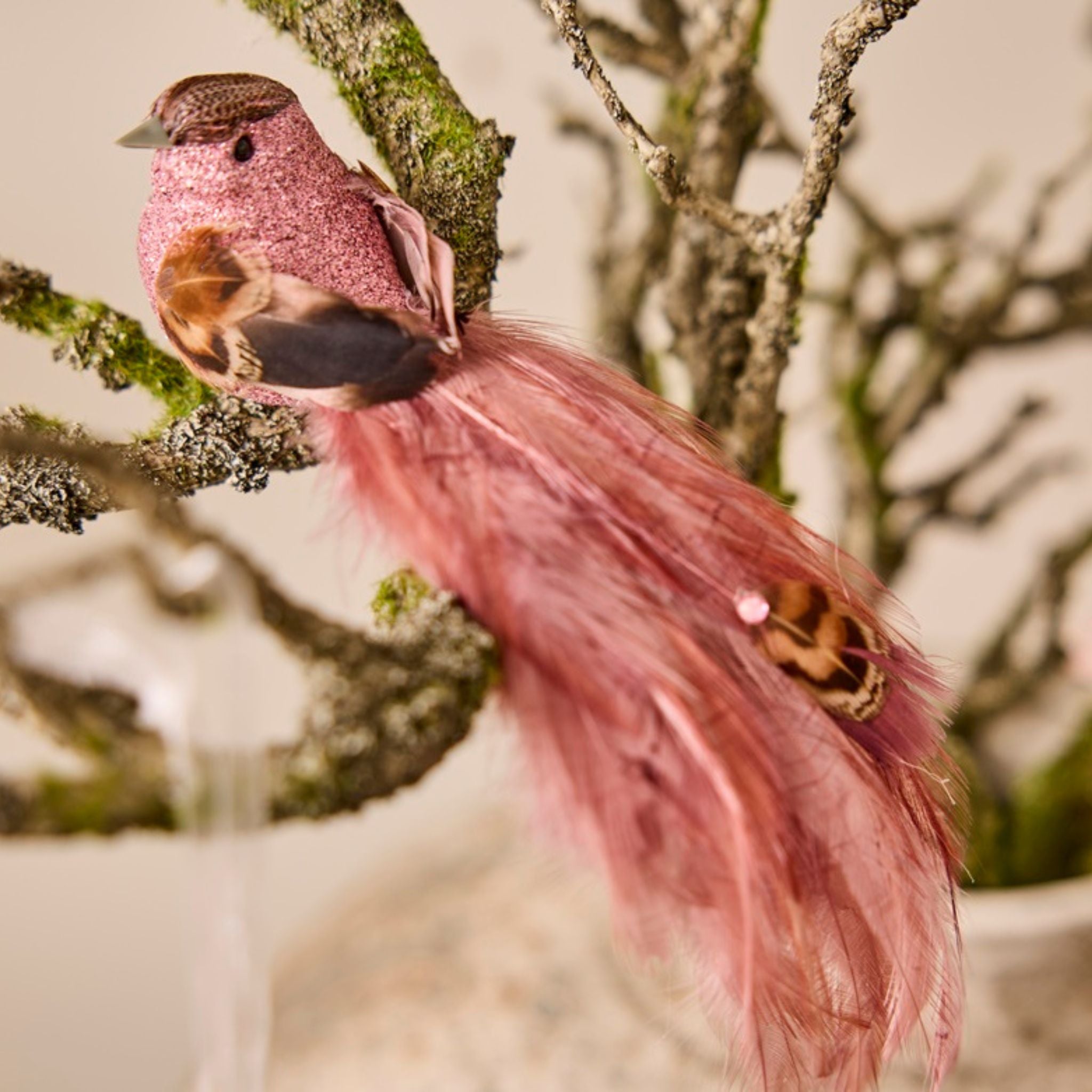 Flotte dekorative og skønne fugle, i forskellige farver med glitter, som tilføjer et ekstra pift til dit juletræ, dekoration eller på en gren i en vase.
