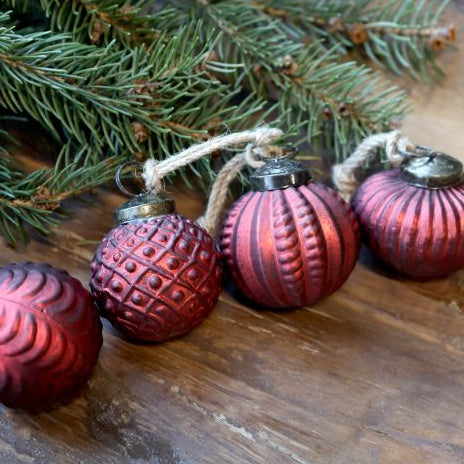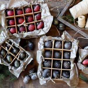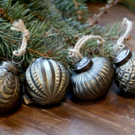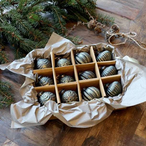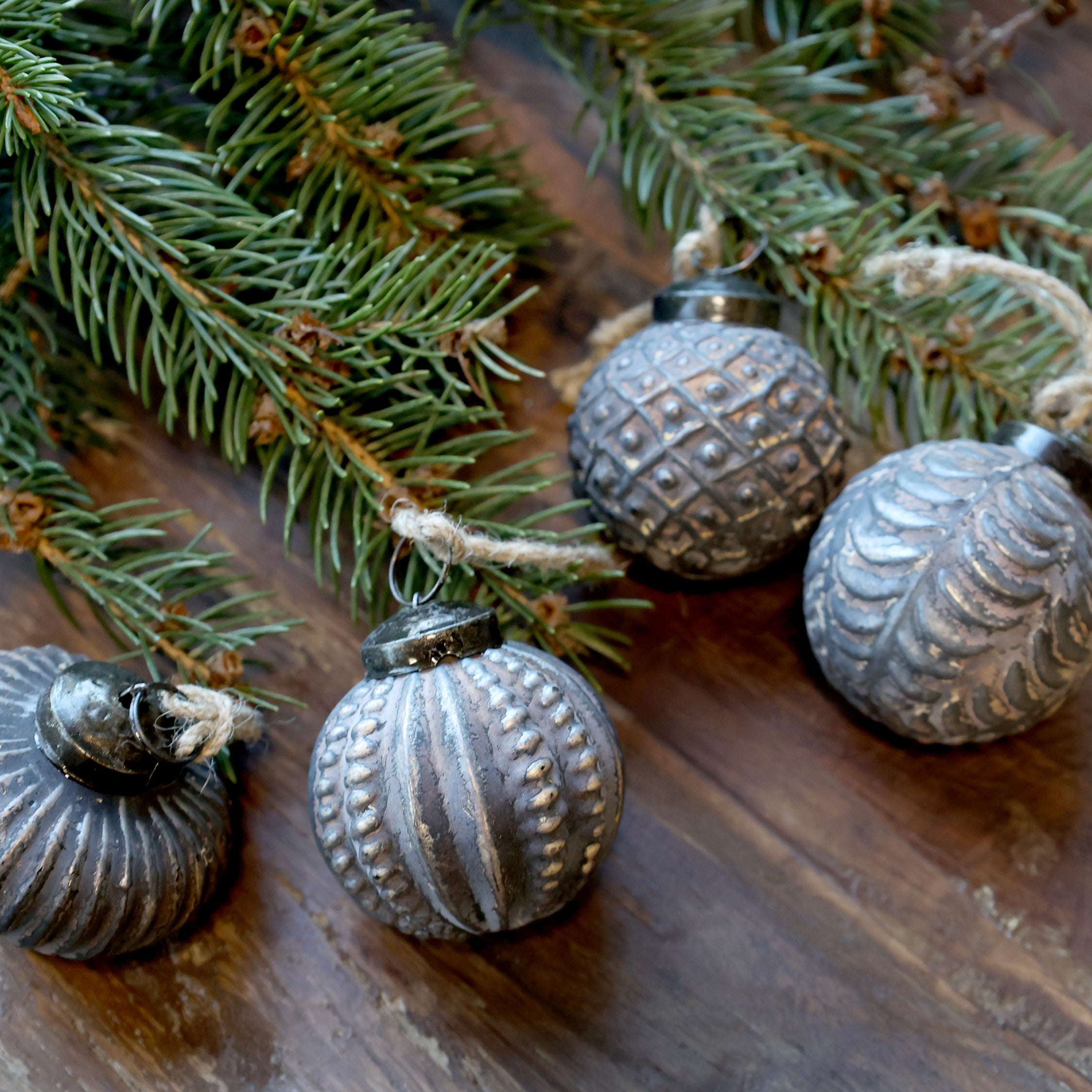 Smukke nostalgiske julekugler med et rustikt look fra Chic Antique.