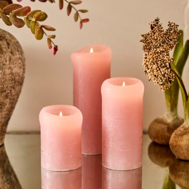 Bloklys Rustik Ø7 cm - Lyserød - Flere størrelser