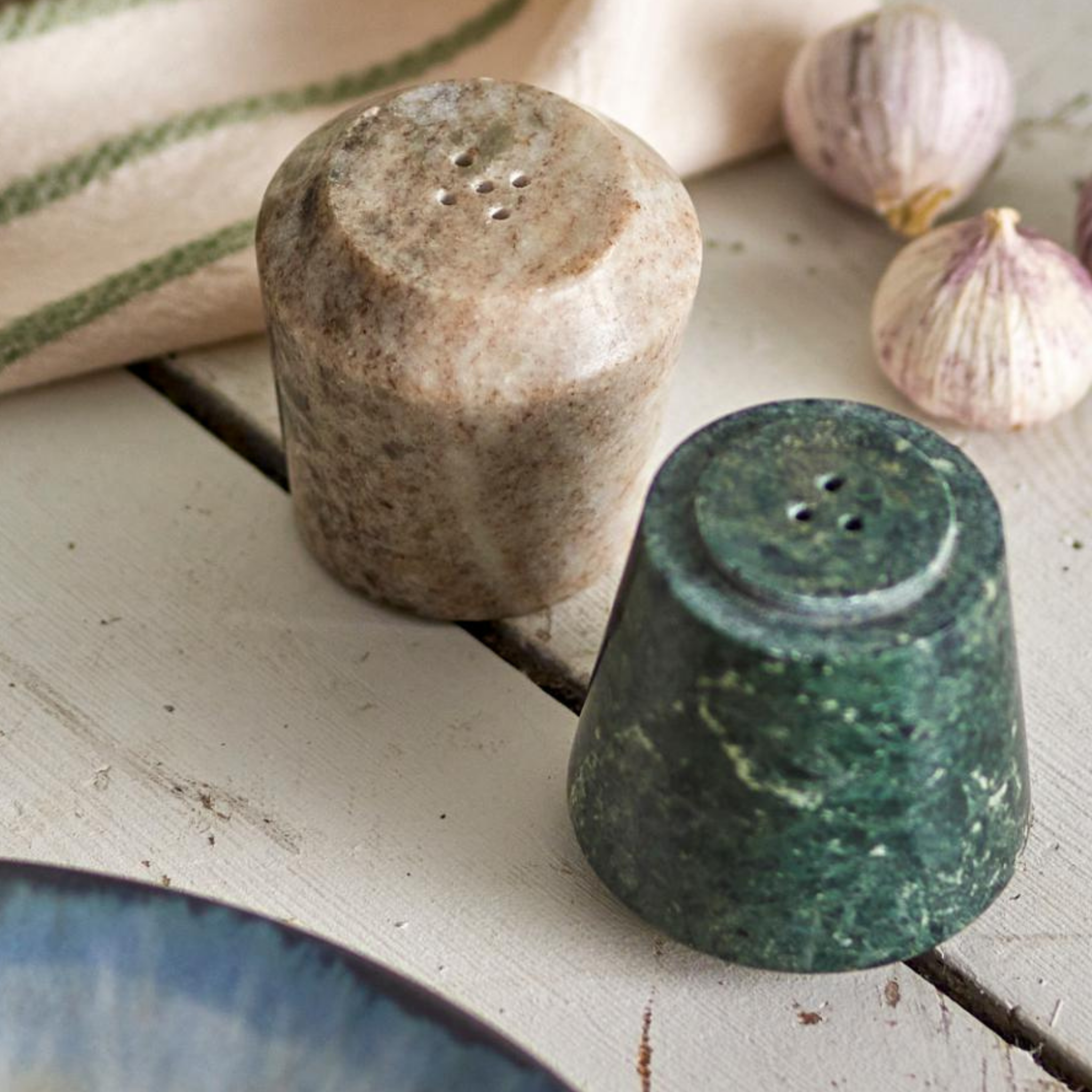 Duo Salt & Pebersættet fra Bloomingville er den perfekte kombination af minimalisme og elegance, der beriger ethvert spisebord. Fremstillet af marmor i smukke grønne og brune nuancer, tilføjer sættet en beroligende og naturlig æstetik til din borddækning. De harmoniske farver komplementerer hinanden og skaber en stilfuld atmosfære, samtidig med at de tilbyder praktisk funktionalitet.