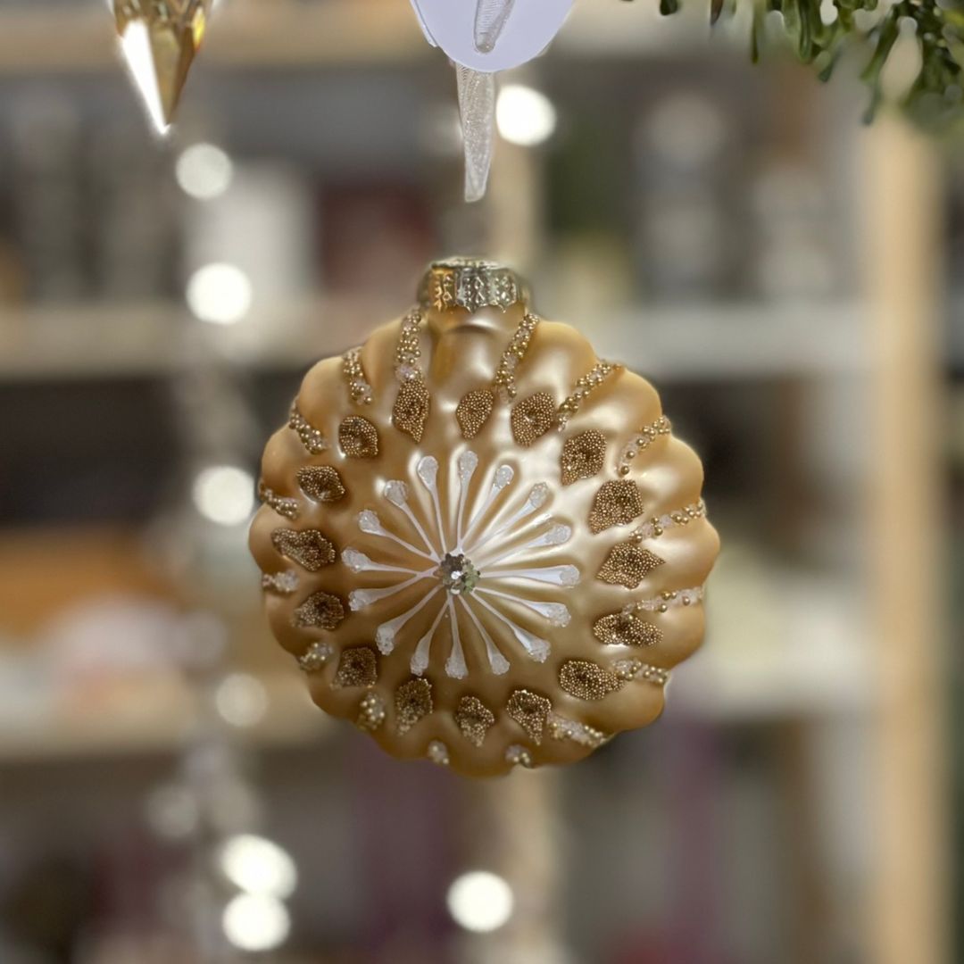 Pynt op til jul med denne smukke flade julekugle og skab den hyggeligste stemning i dit hjem.