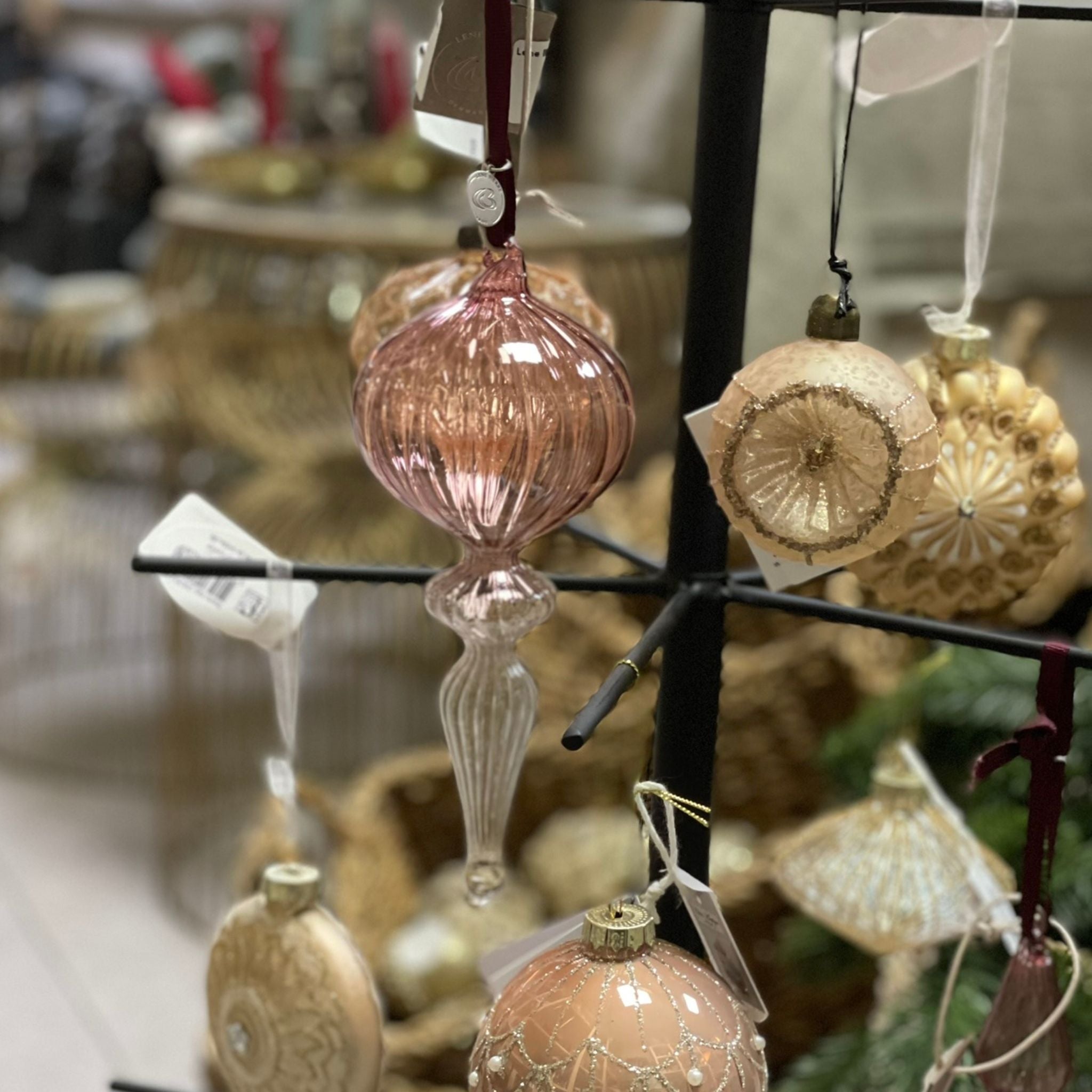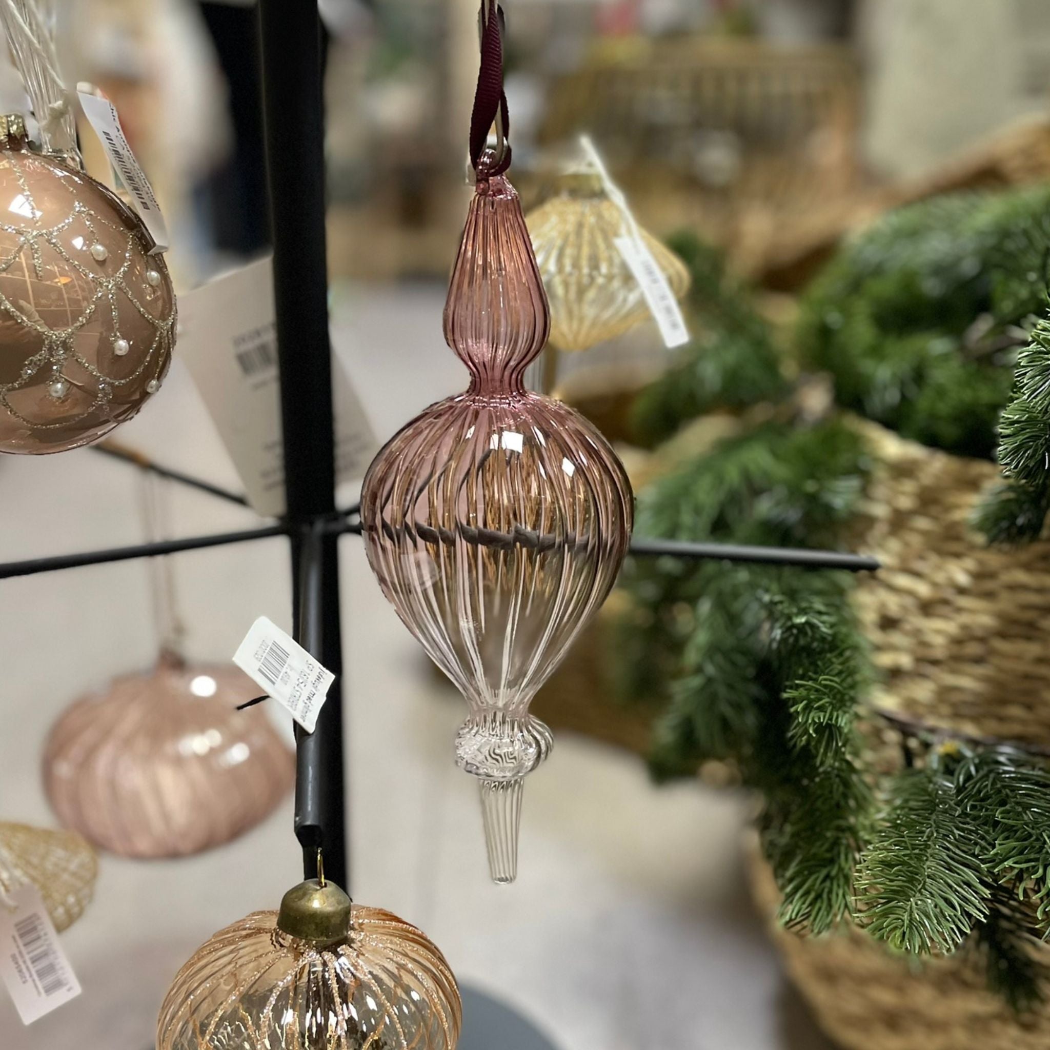 Disse julekugler er i klar glas der går fra sart lyserød til hvid. De unikke former på kuglerne gør at de virkelig skiller sig ud blandt de traditionelle julekugler og kan skabe lidt mere variation i dine juledekorationer.