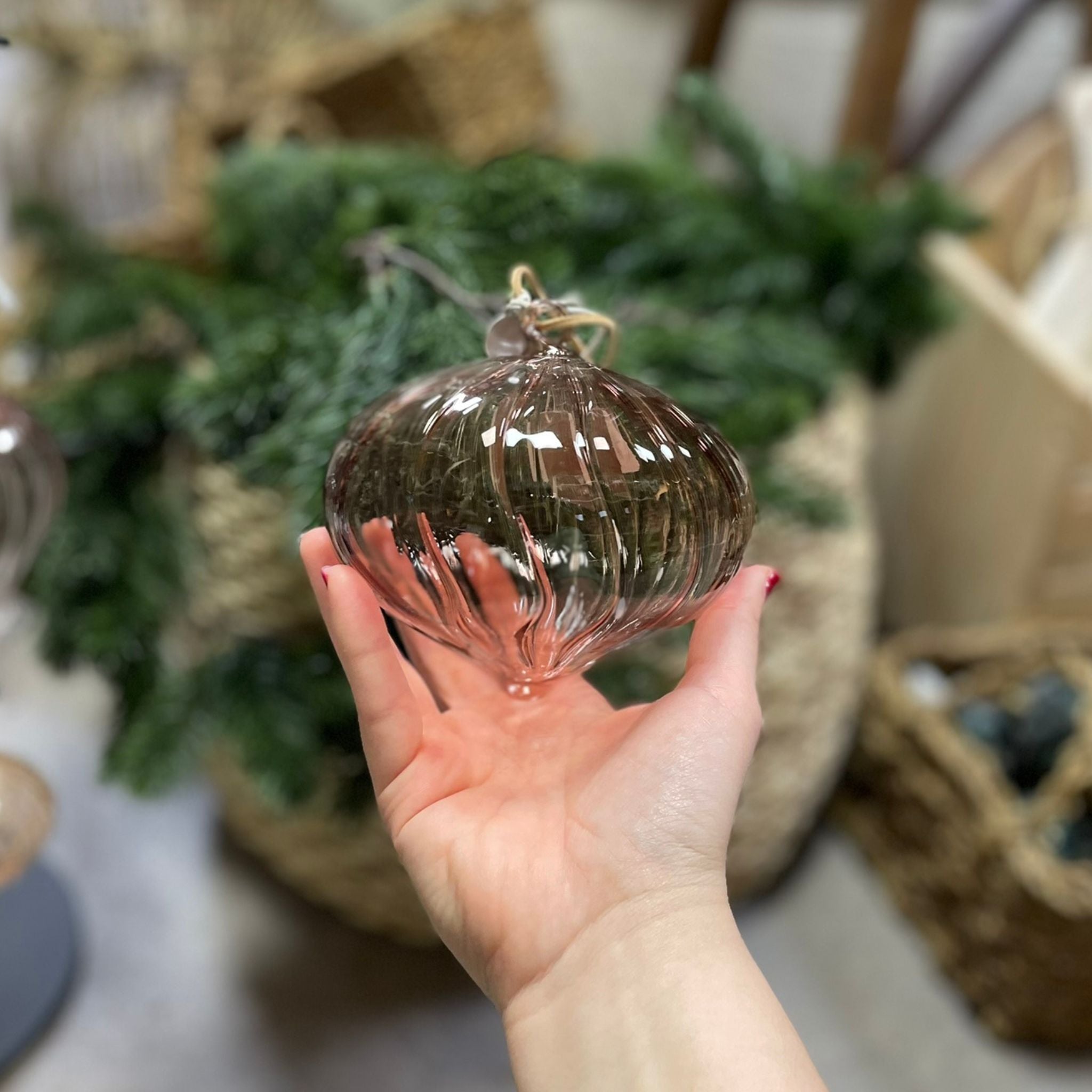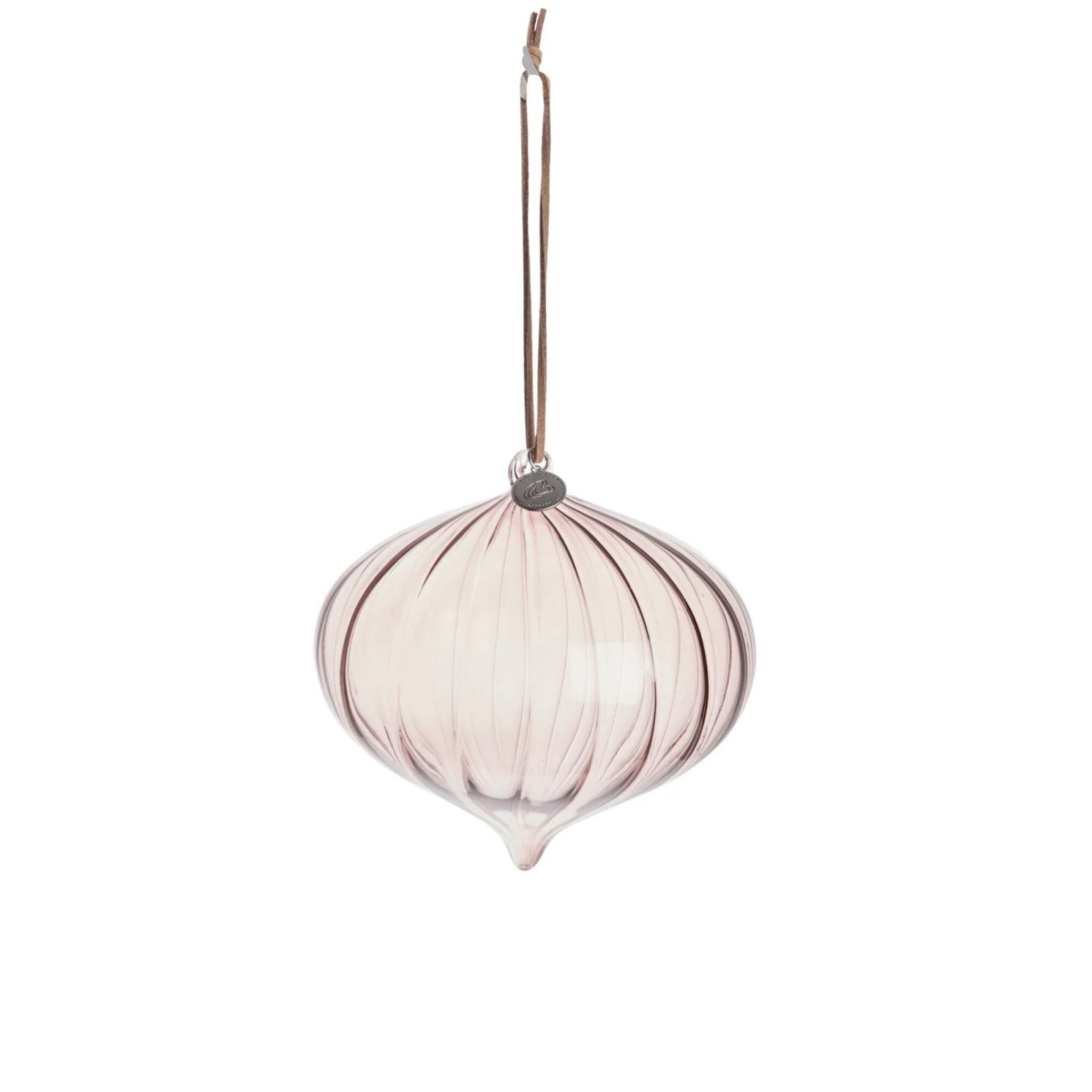 Tilføj et strejf af luksus til dit juletræ med denne smukke julekugle fra Lene Bjerre. Dette eksklusive ophæng er fremstillet i klar glas med et svagt lyserødt tint. Kuglen måler 12x12 cm. Hver julekugle er håndlavet, hvilket gør hver eneste unik og fyldt med charme.