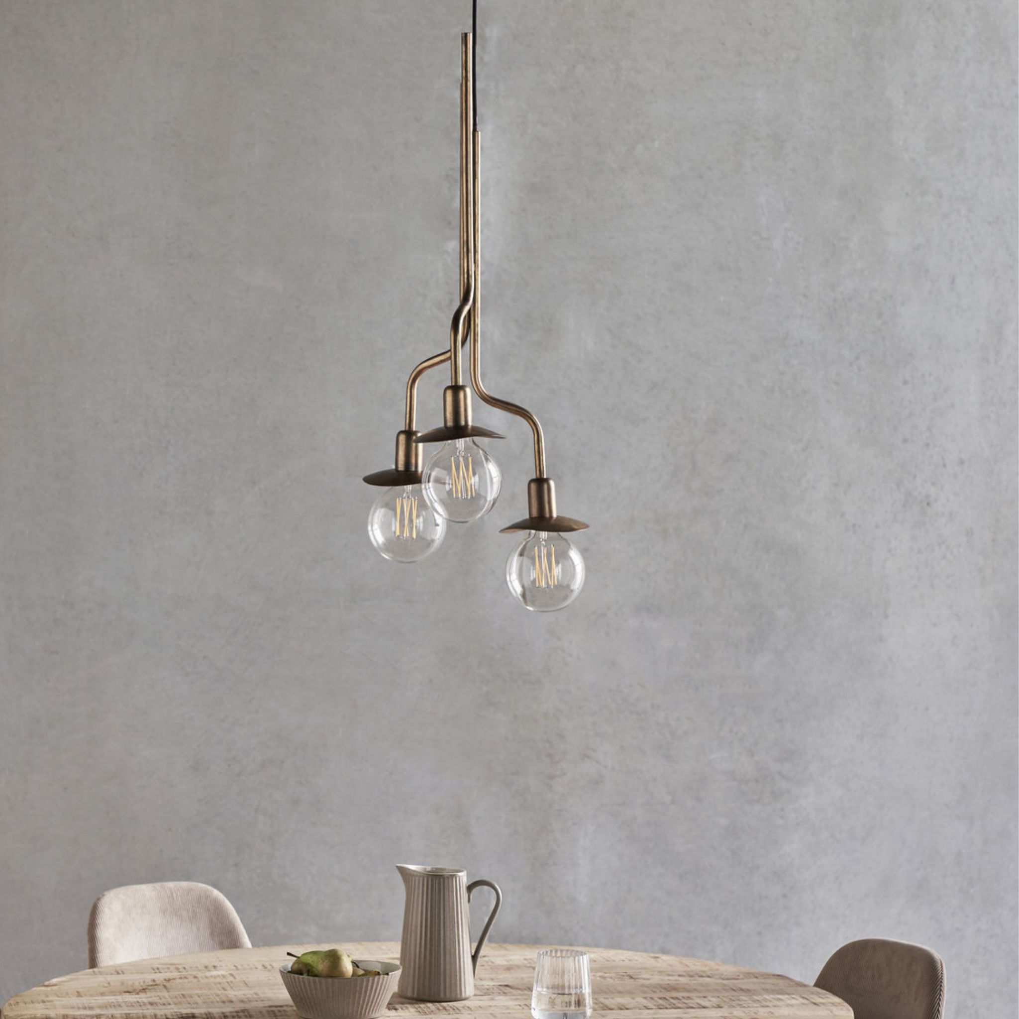 Der er plads til tre synlige pærer, og lampen skaber en indbydende og varm stemning.