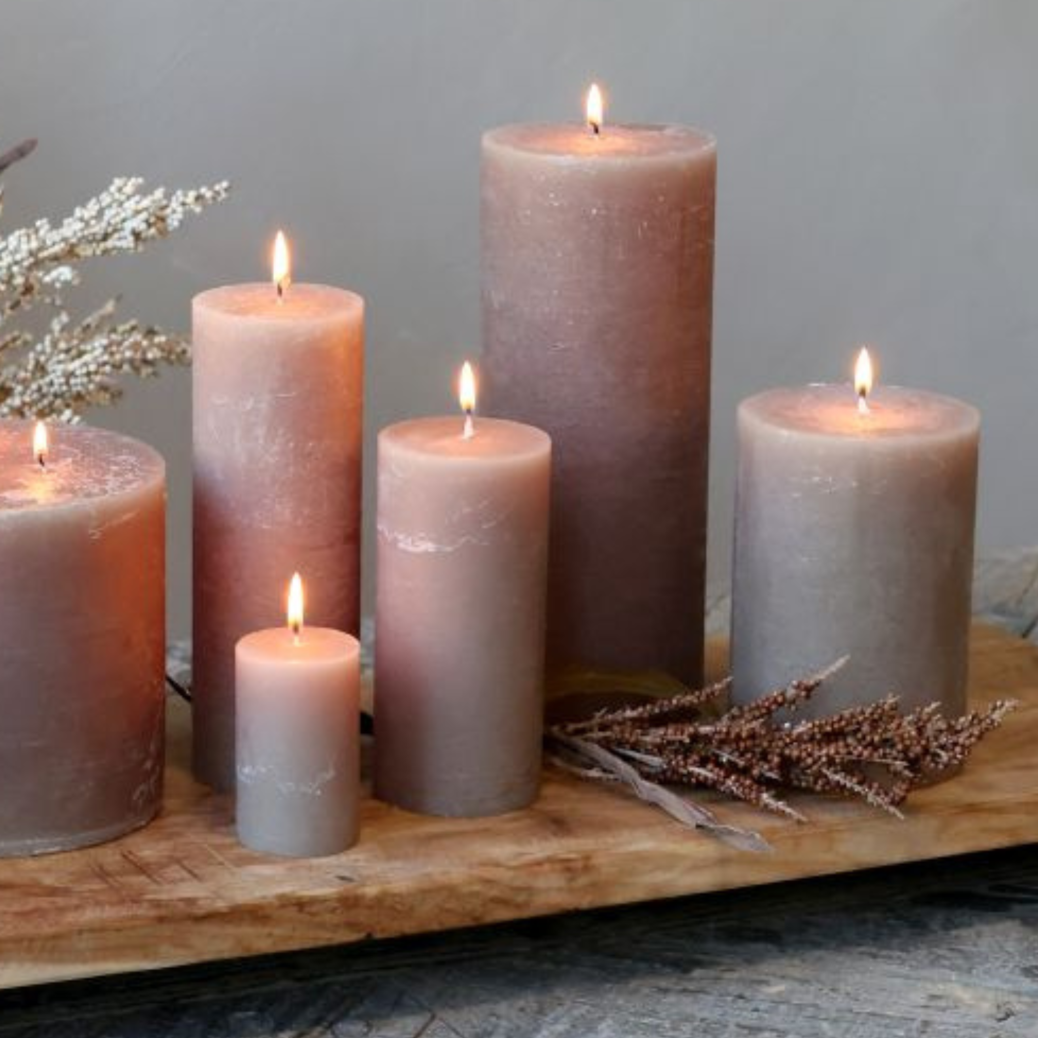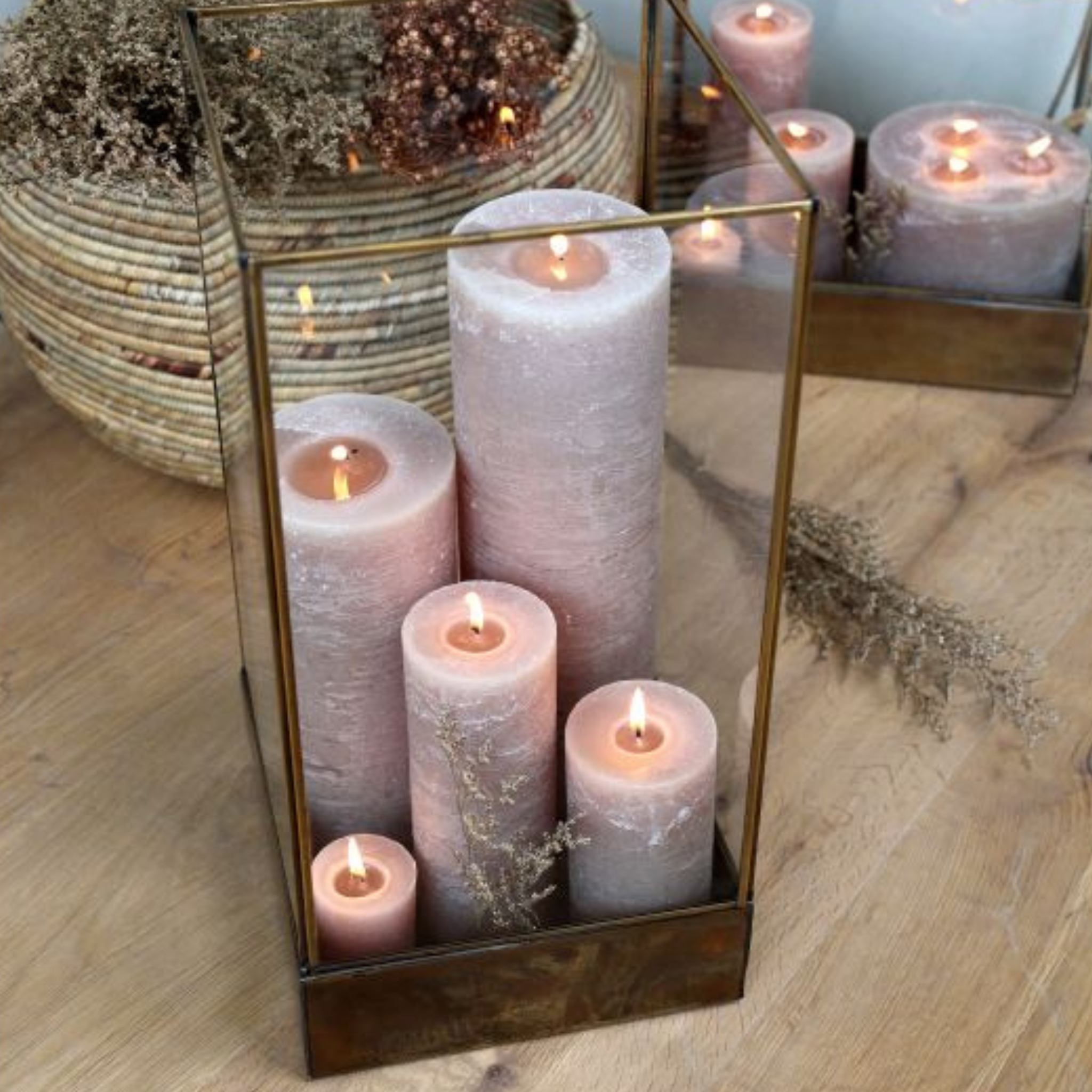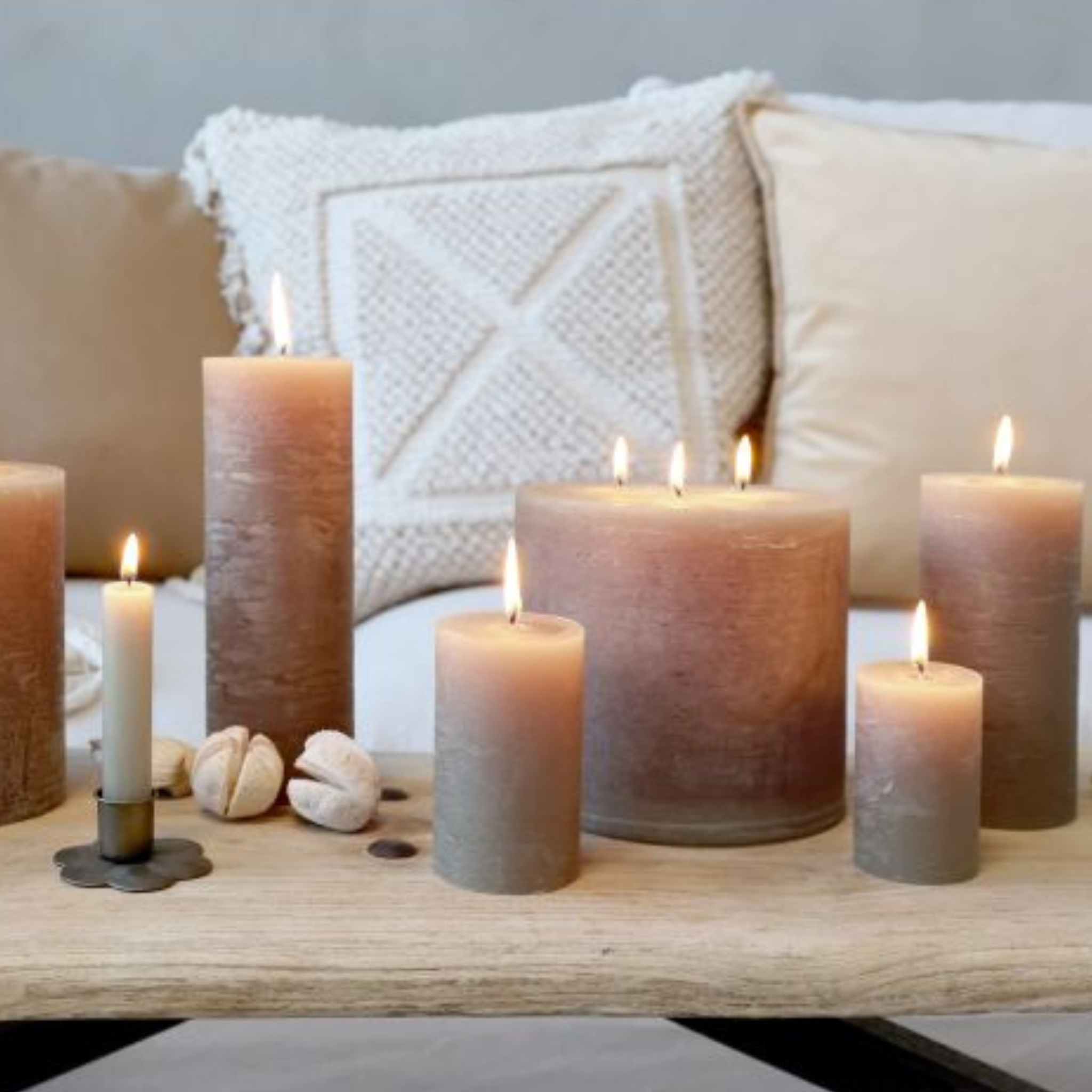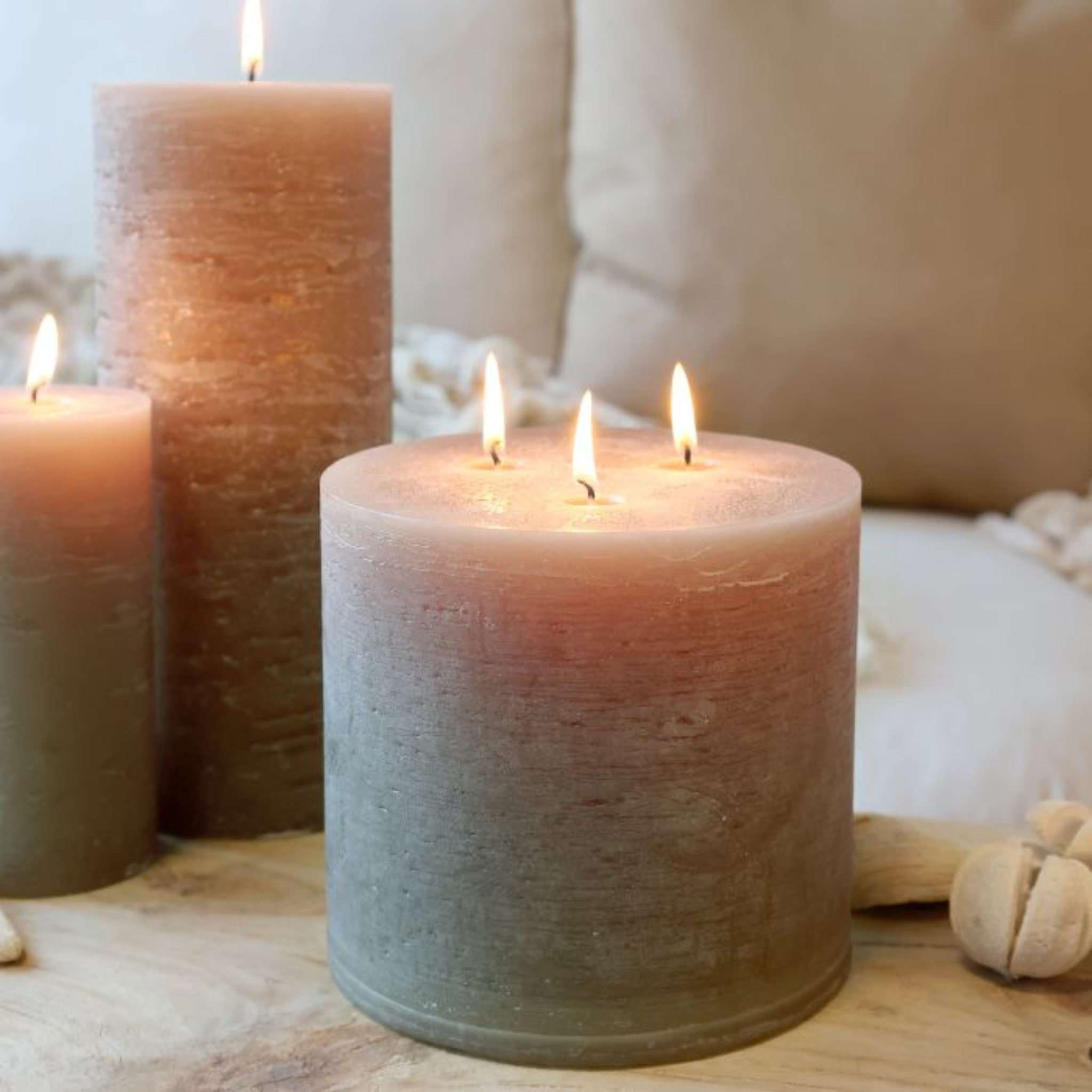 Smukke, dekorative og rustikke bloklys i en flot hør farve fra Chic Antique.