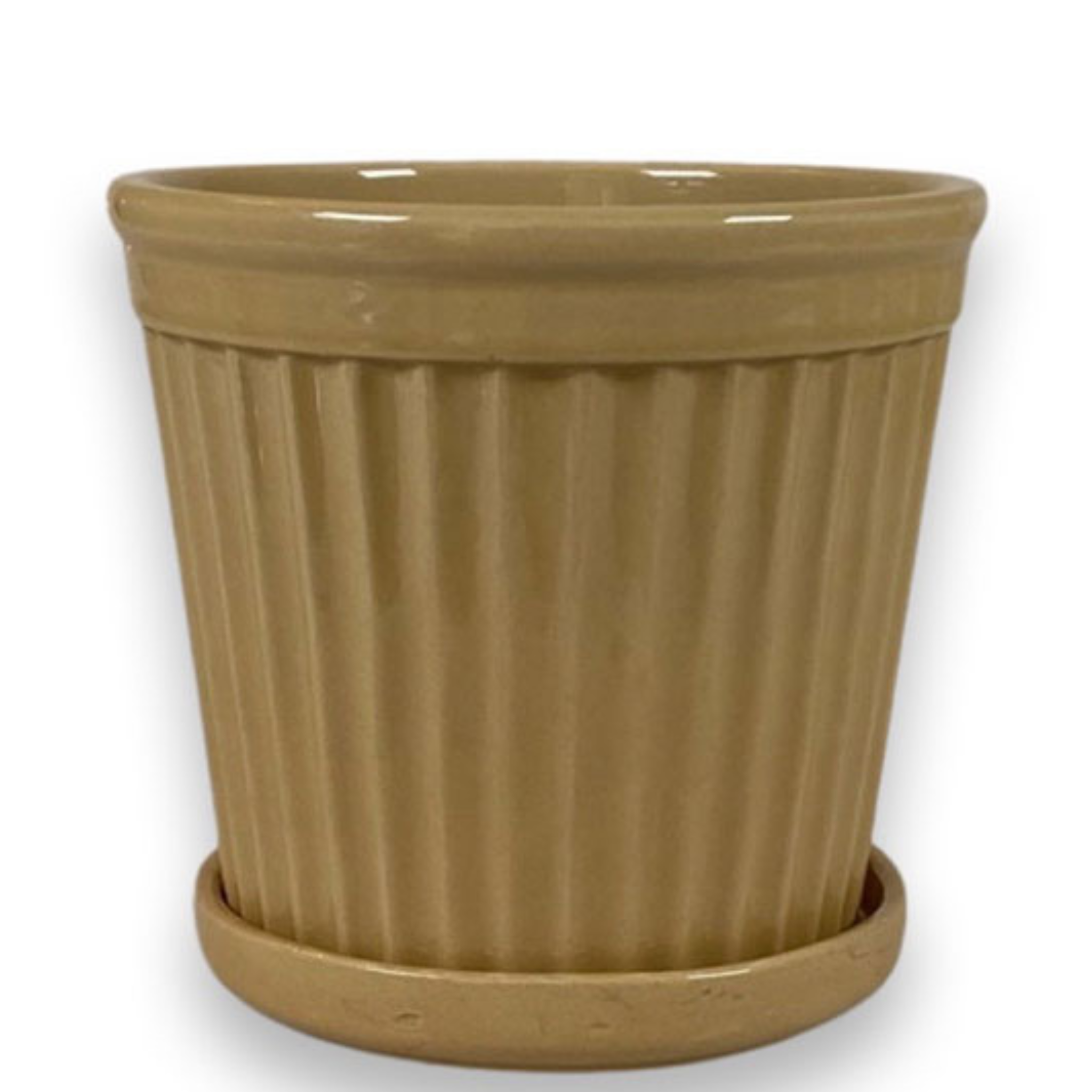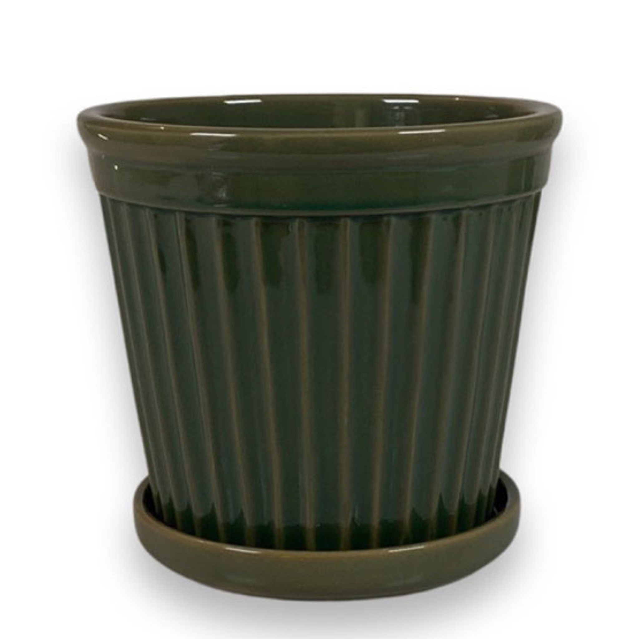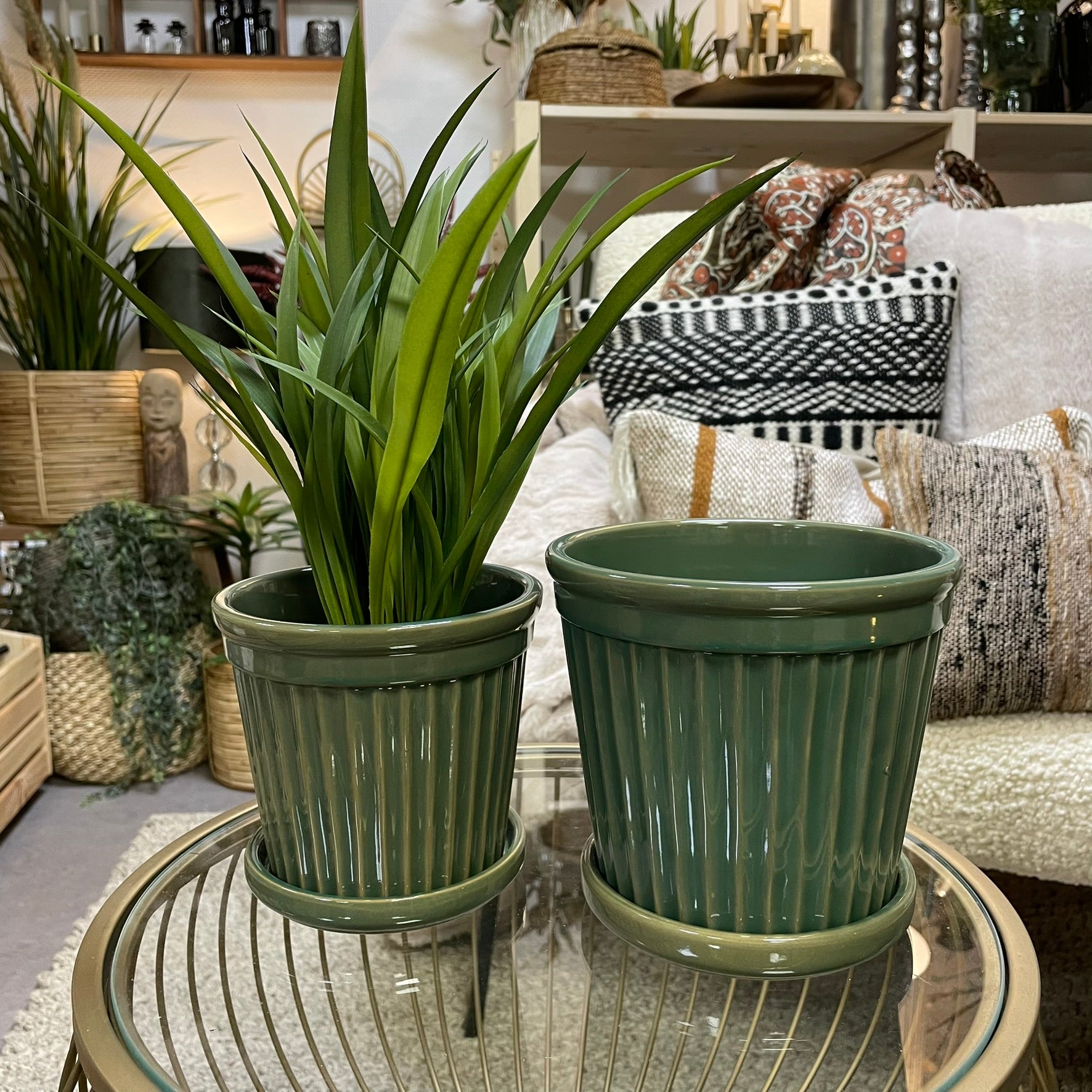 Flot potte i en smuk glaseret mosgrøn eller gylden farve. Potten fås i to størrelser.