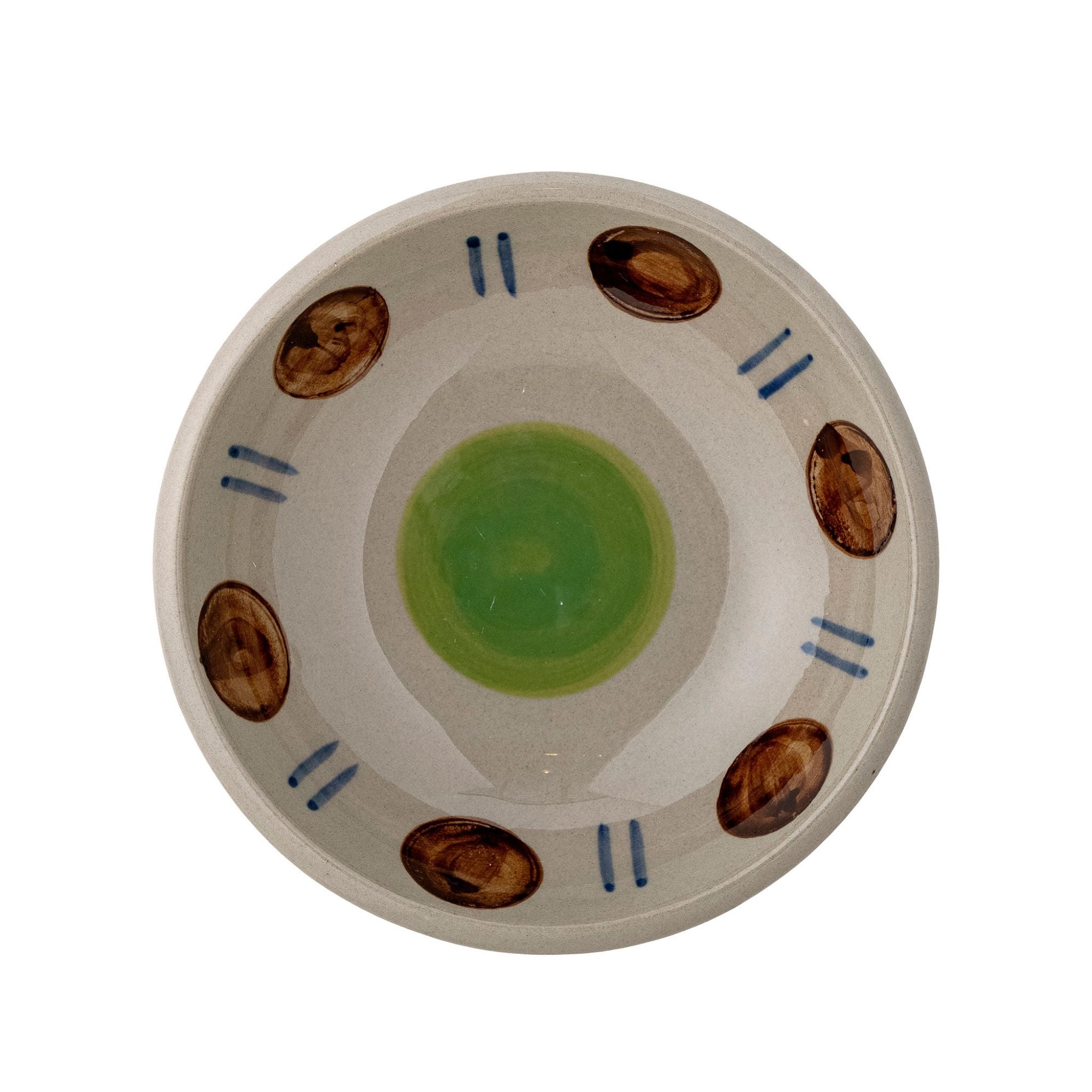 Oplev dette unikke skålesæt i stentøj, hvor hver skål er håndmalet med omhu.