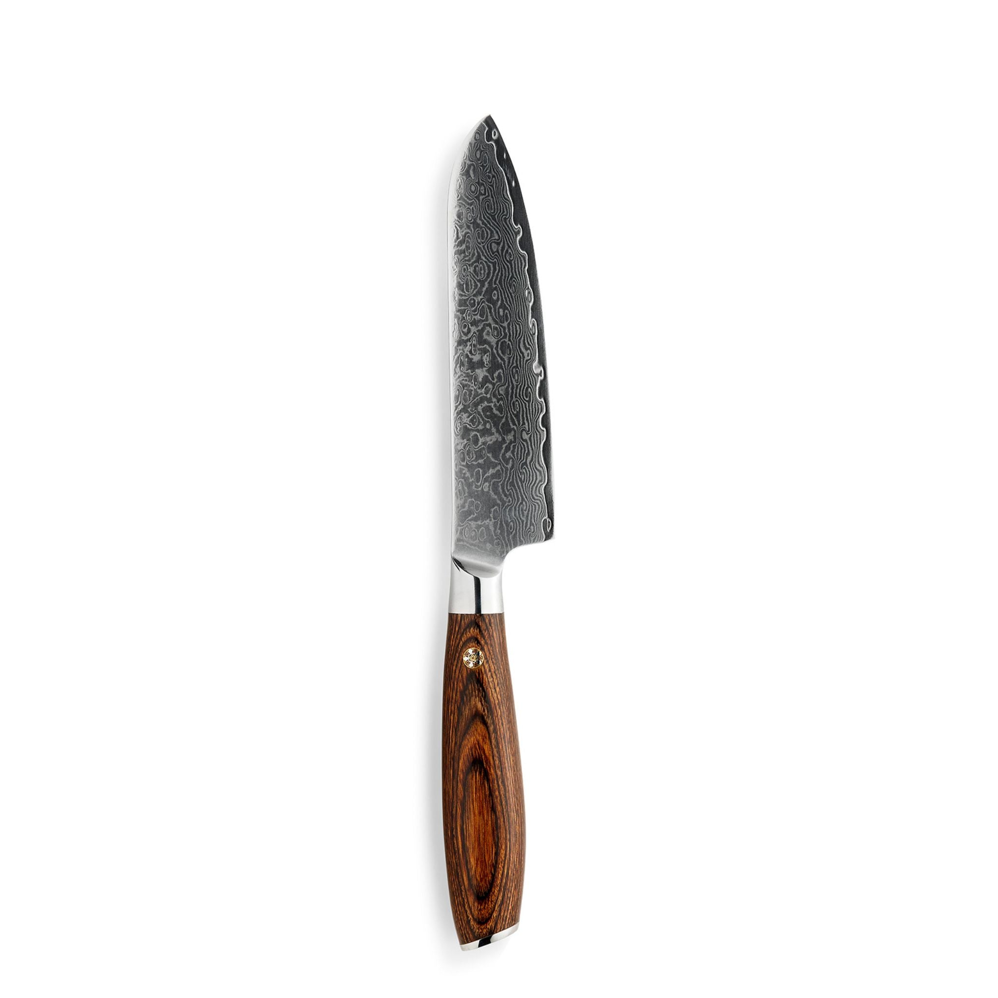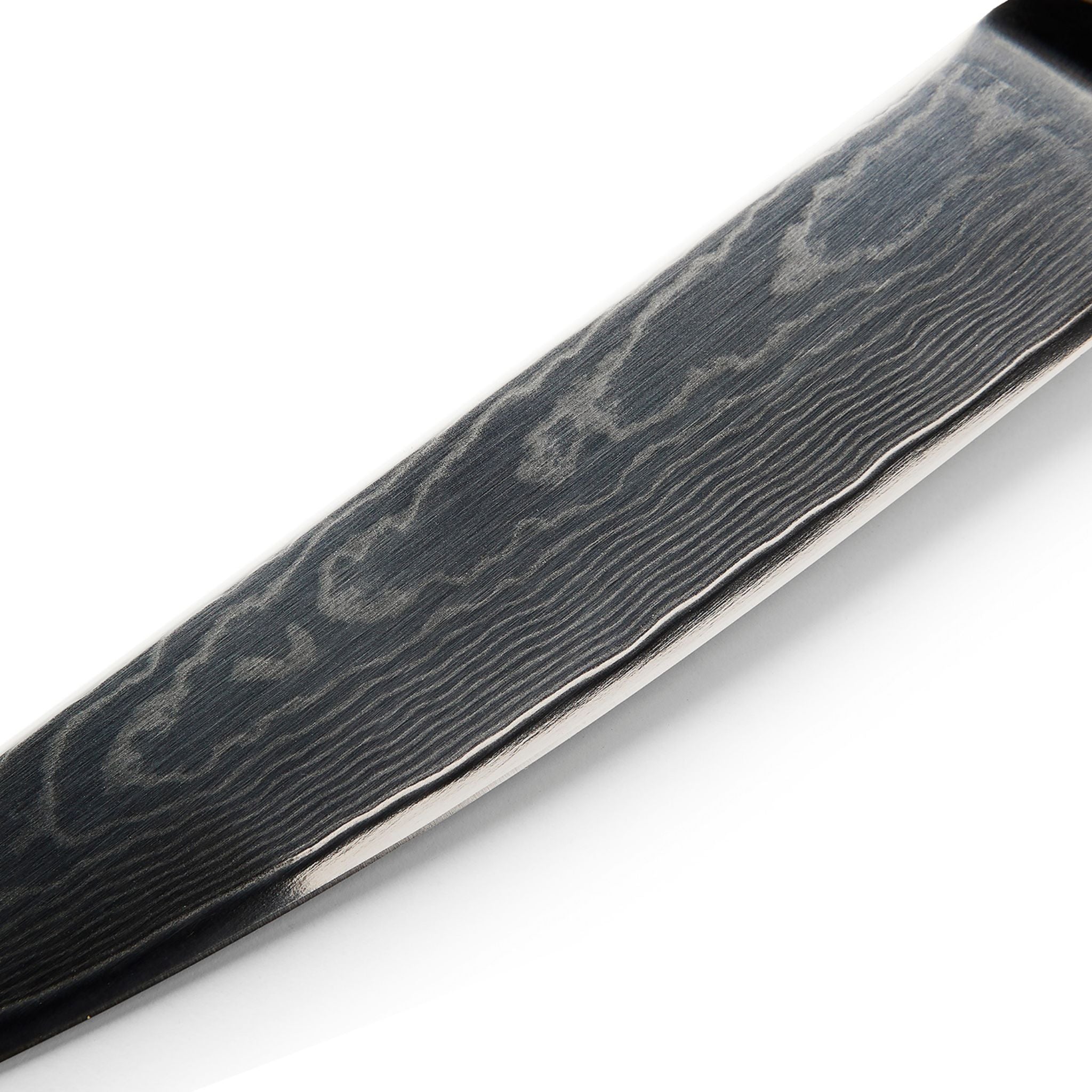 Disse køkkenknive er fremstillet af Damaskusstål, hvilket giver knivene både robusthed og skarphed.