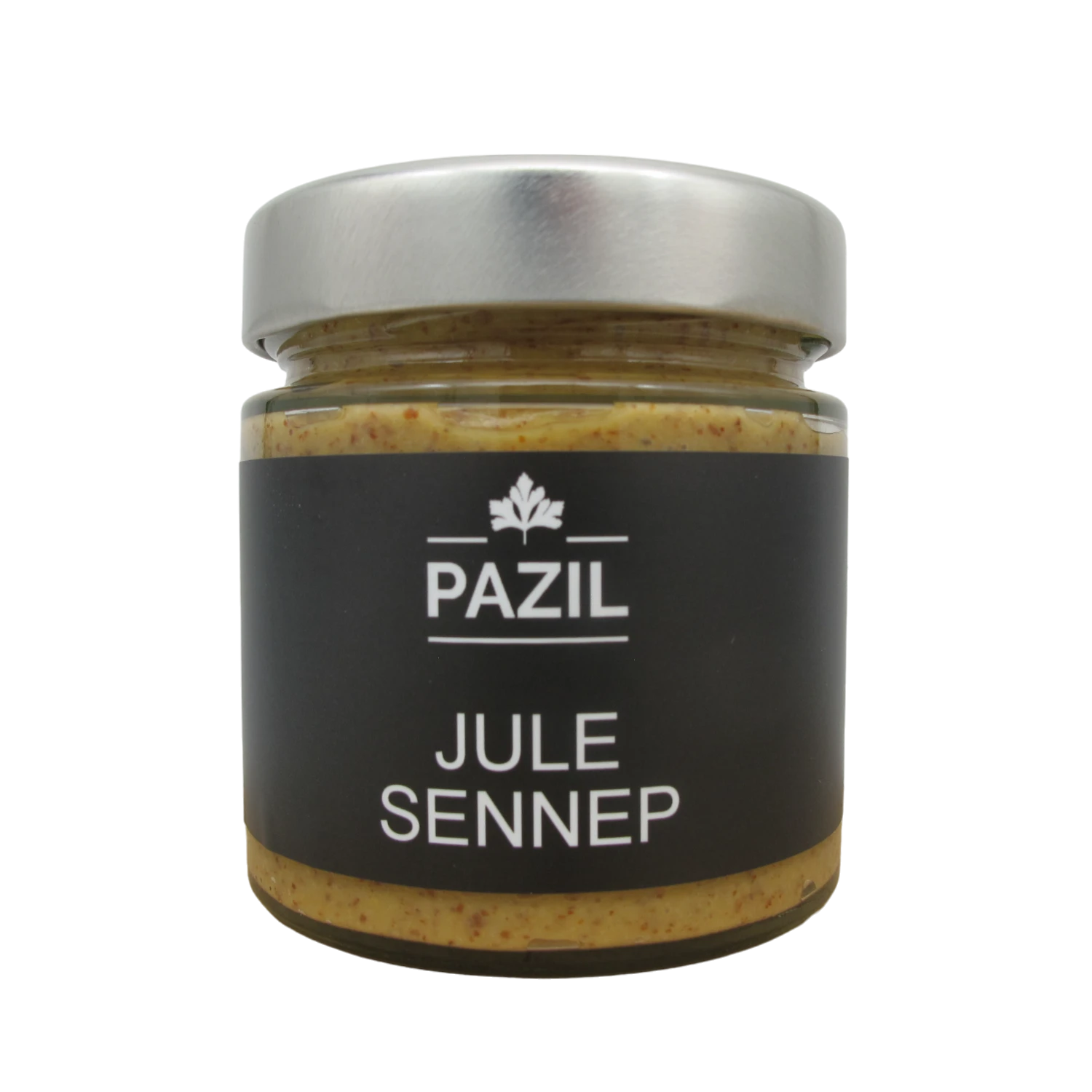 Sennep med smag af julens krydderier tilsat honning fra lokal biavler. Velegnet sammen med alt julens skønne mad.