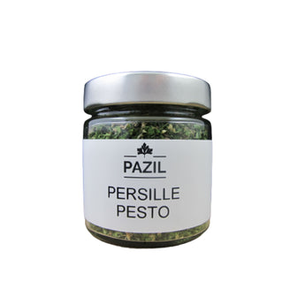 Bland 1 spsk persille pesto med 1,5 spsk vand og lad det trække i 2-5 minutter. Bland herefter 2-4 spsk olie i.