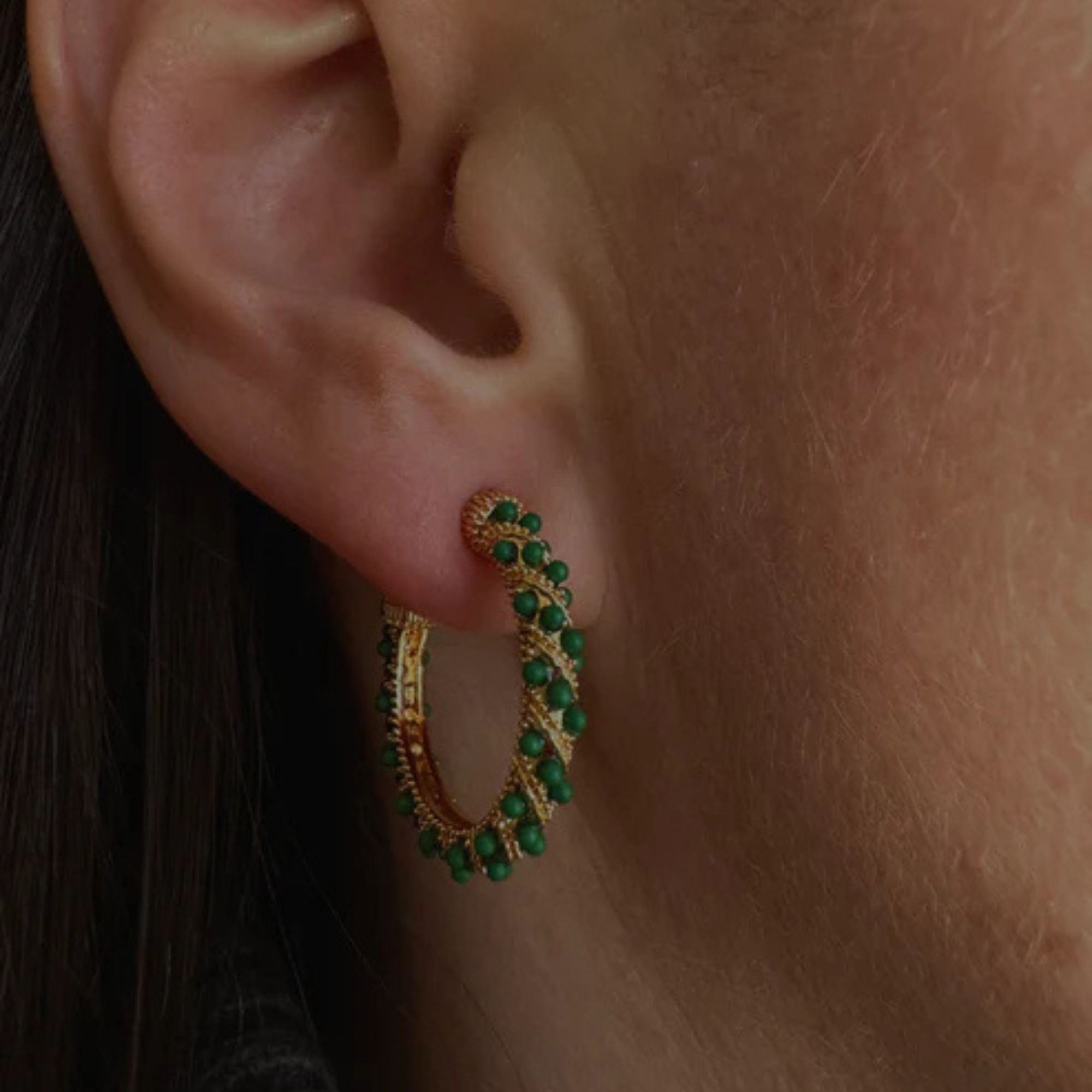 Smukke ørestikker hoops med hvide perler der skaber ekstra blikfang fra Pico Copenhagen. Dejlig detalje til ethvert outfit.