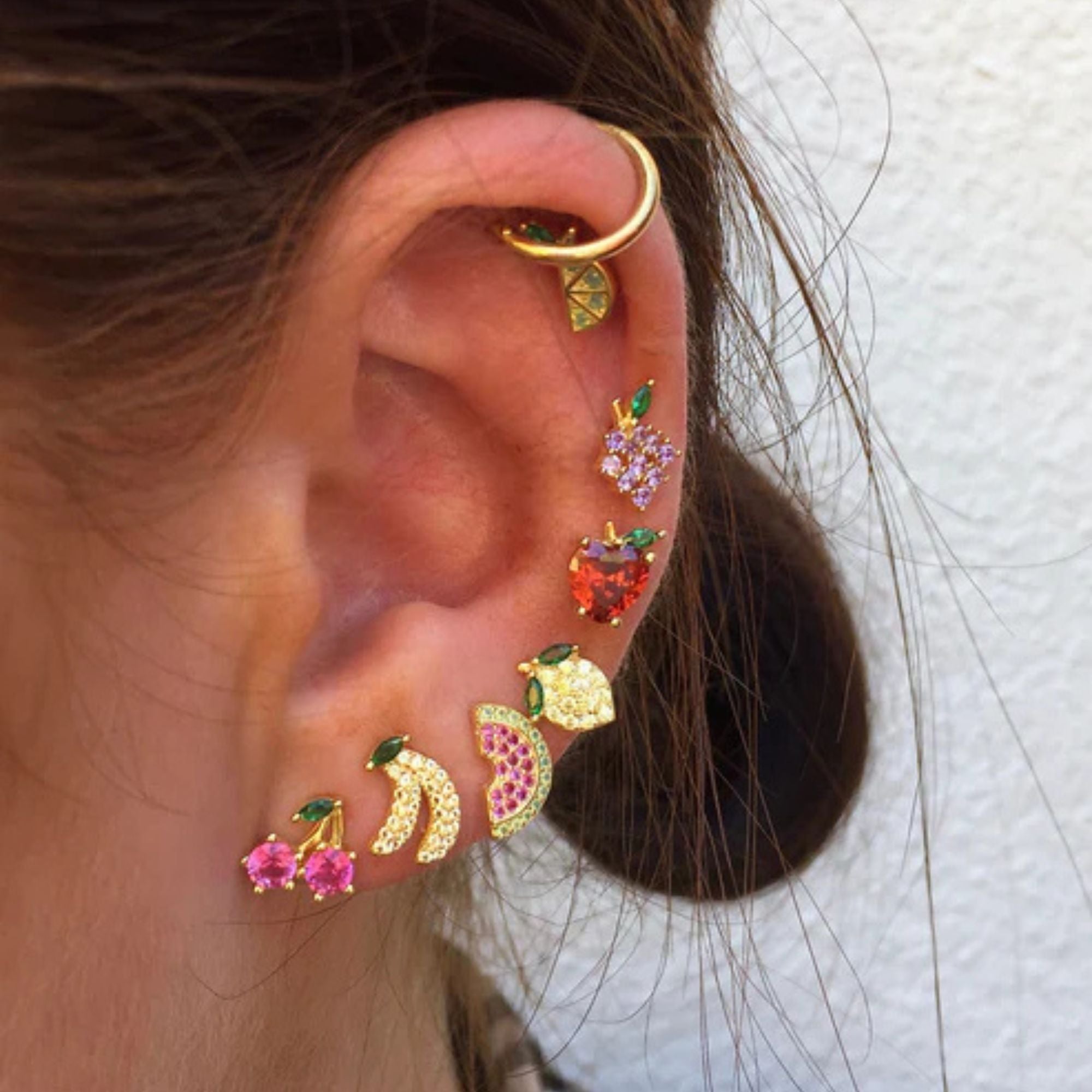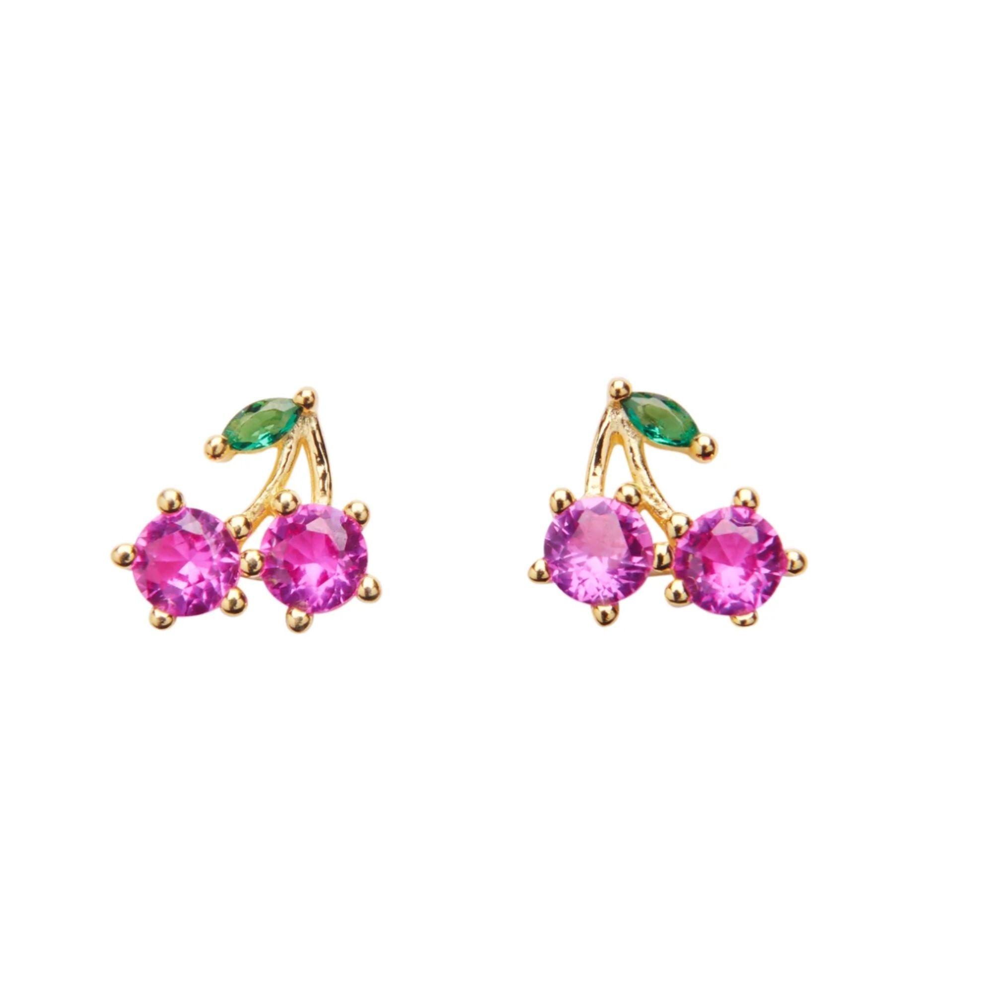 Super søde kirsebærs ørestykker med glitrende krystaller. Tilføj et unikt touch til din øreringe stack med disse smukke øreringe fra Pico Copenhagen.