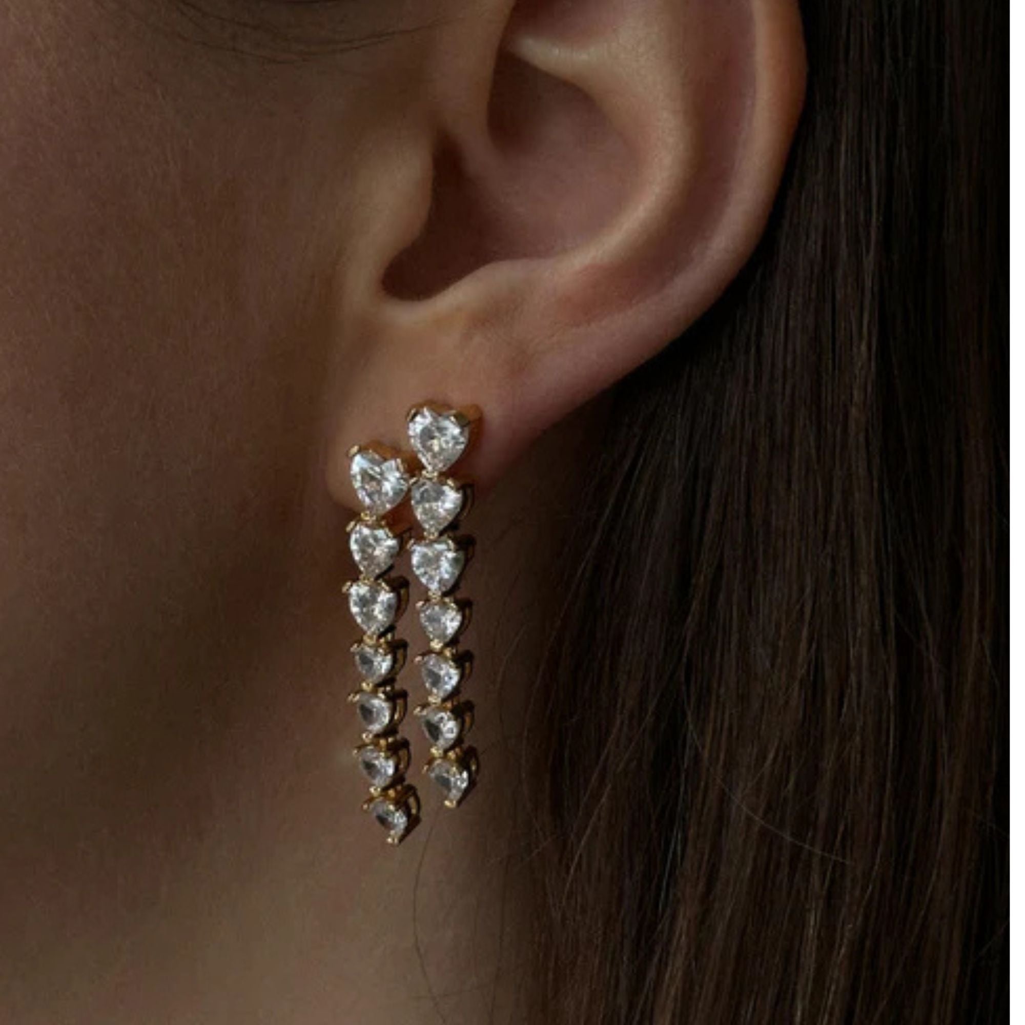 Fantastiske lange øreringe med hjerteformet krystaller fra Pico Copenhagen. Perfekt til festlige lejligheder, hvor du skal imponere med noget bling. Rigtig fine til bryllup, konfirmation eller galla.