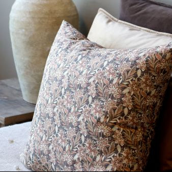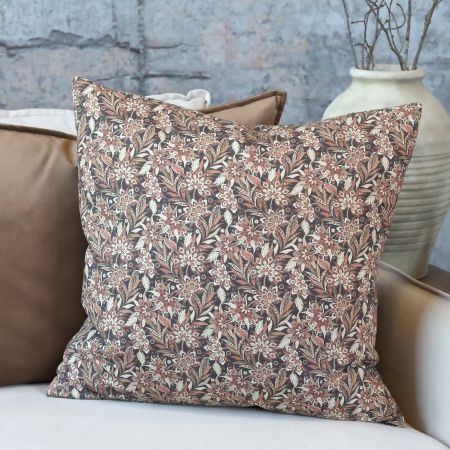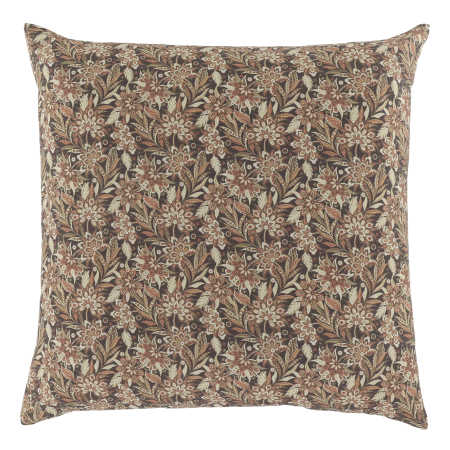 Flot pyntepude betræk med blomstret mønster i farverne cognac og latte.
