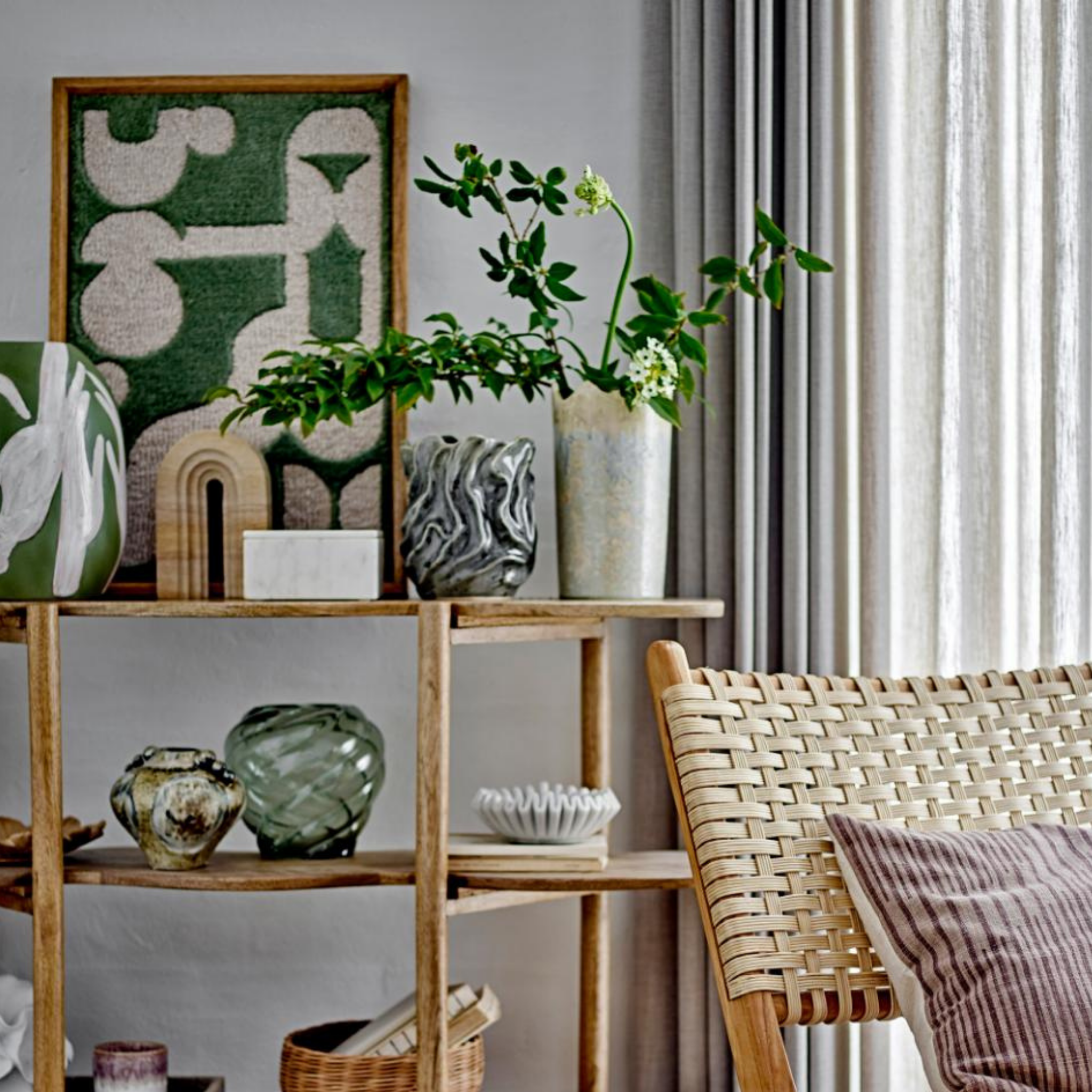 Oplev Longton Vægdekoration fra Bloomingville – en perfekt balance mellem naturinspirerede former og delikate, håndtuftede teksturer. Med sine blide grønne og lyse nuancer fremhæver det elegante, grafiske mønster rummets atmosfære. Den stilrene træramme skaber et naturligt, tidløst look, der passer ind i enhver boligindretning. Vægdekorationens fleksibilitet gør, at du kan hænge den både lodret eller vandret, hvilket gør det nemt at skabe en personlig stil og tilføre rummet en varm, indbydende stemning.