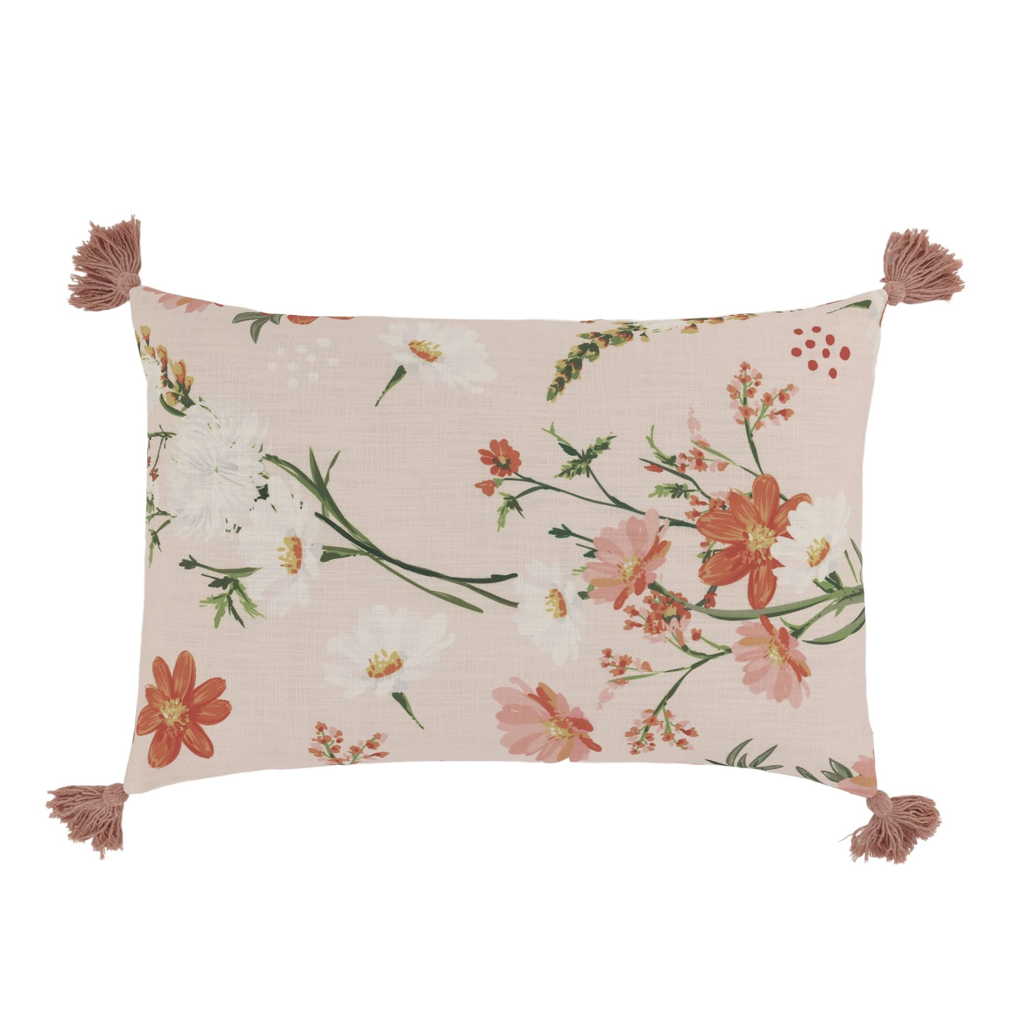 Pyntepudebetræk 60x40cm med kvaster og blomstermønster - Chic Antique