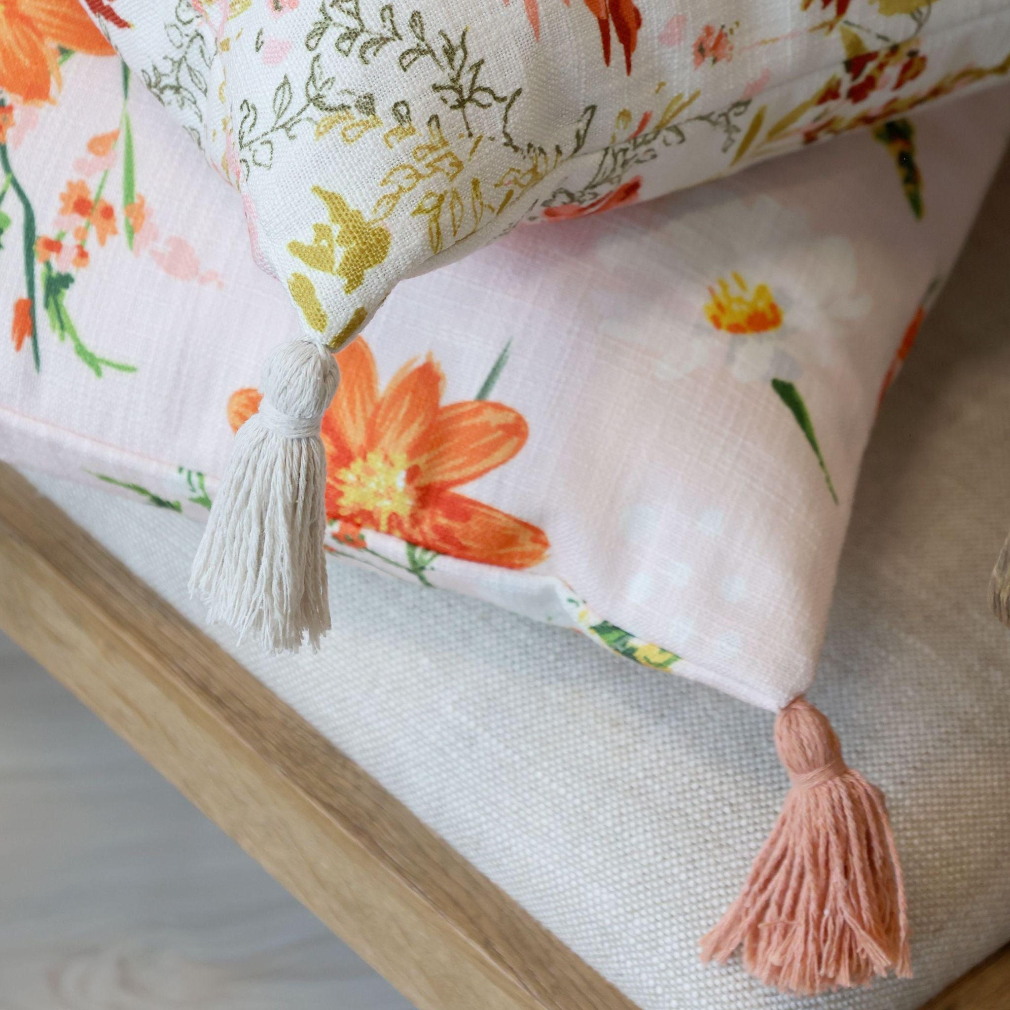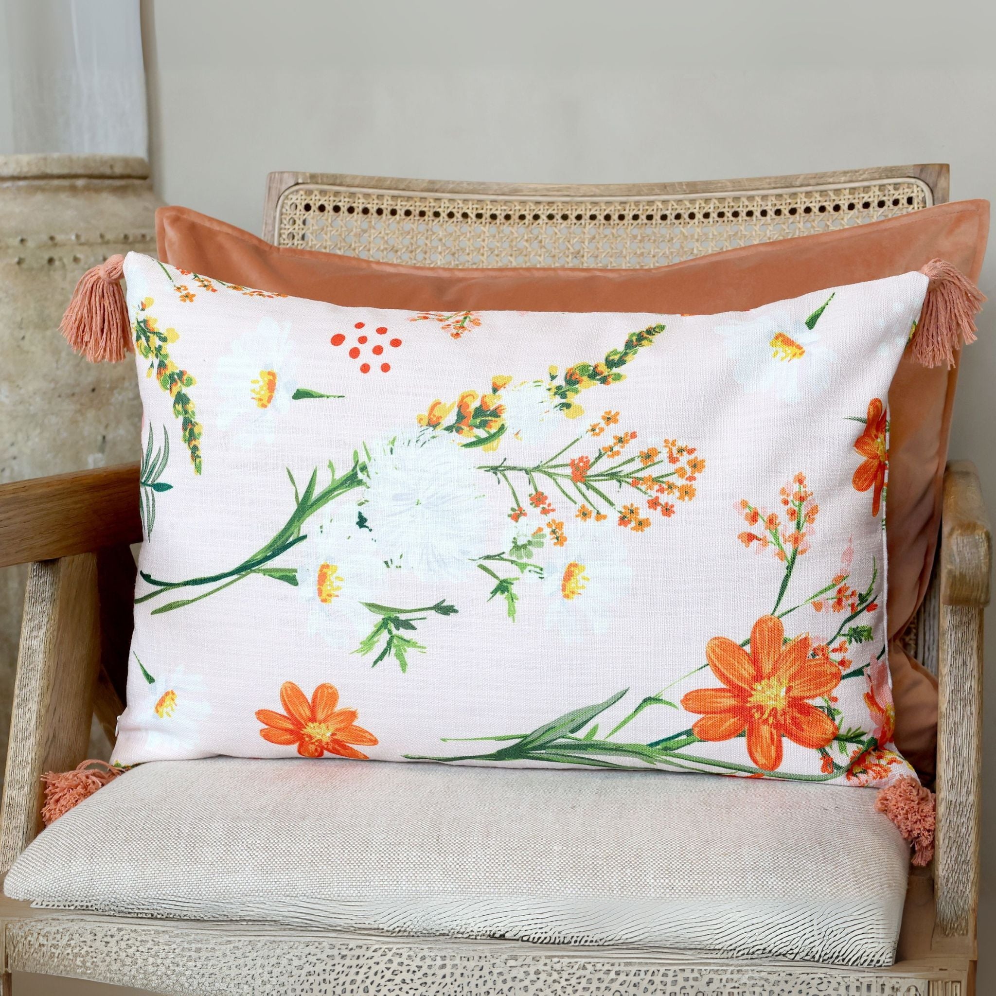 Aix pyntepude med kvaster og blomstermønster tilføjer et smukt og personligt touch til dit hjem. Det elegante blomstermønster og de dekorative kvaster skaber et varmt og indbydende udtryk, der passer perfekt i både moderne og klassisk indretning. Placer den i sofaen, på sengen eller lænestolen – og nyd komfort og stil i ét.