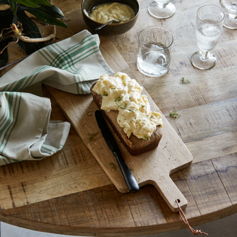 To indlæg sætter prikken over i'et ved at sikre, at skærebrættet ikke bøjer. Brættets længde og håndtag indbyder til at bruge det som serveringsfad til tapas eller snacks, når du får gæster på besøg.