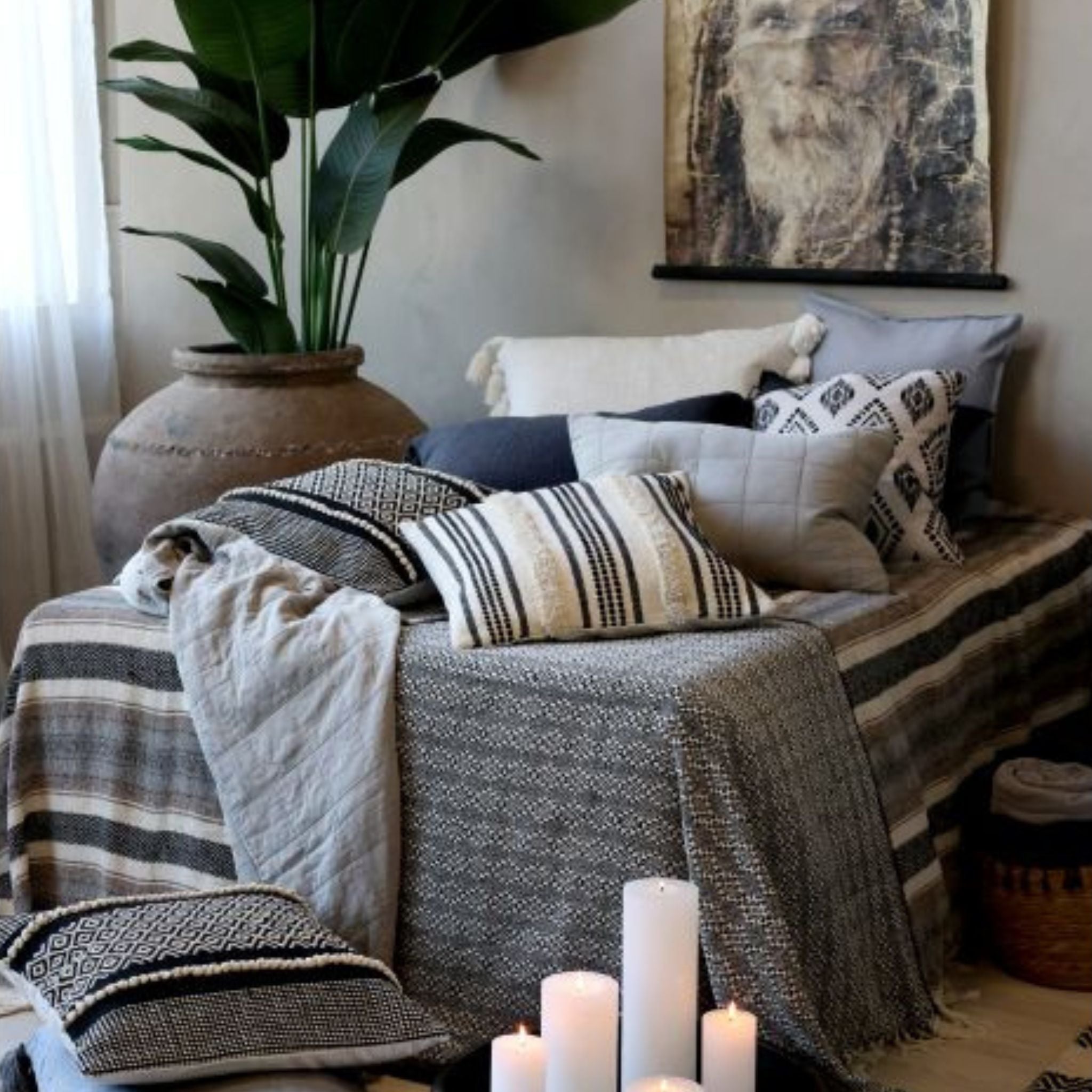 Den bløde tekstur og de dekorative kvaster giver et raffineret, men afslappet udtryk, der tilfører hygge og stil til sofaen, lænestolen eller soveværelset. Et enkelt touch, der gør en stor forskel i indretningen.