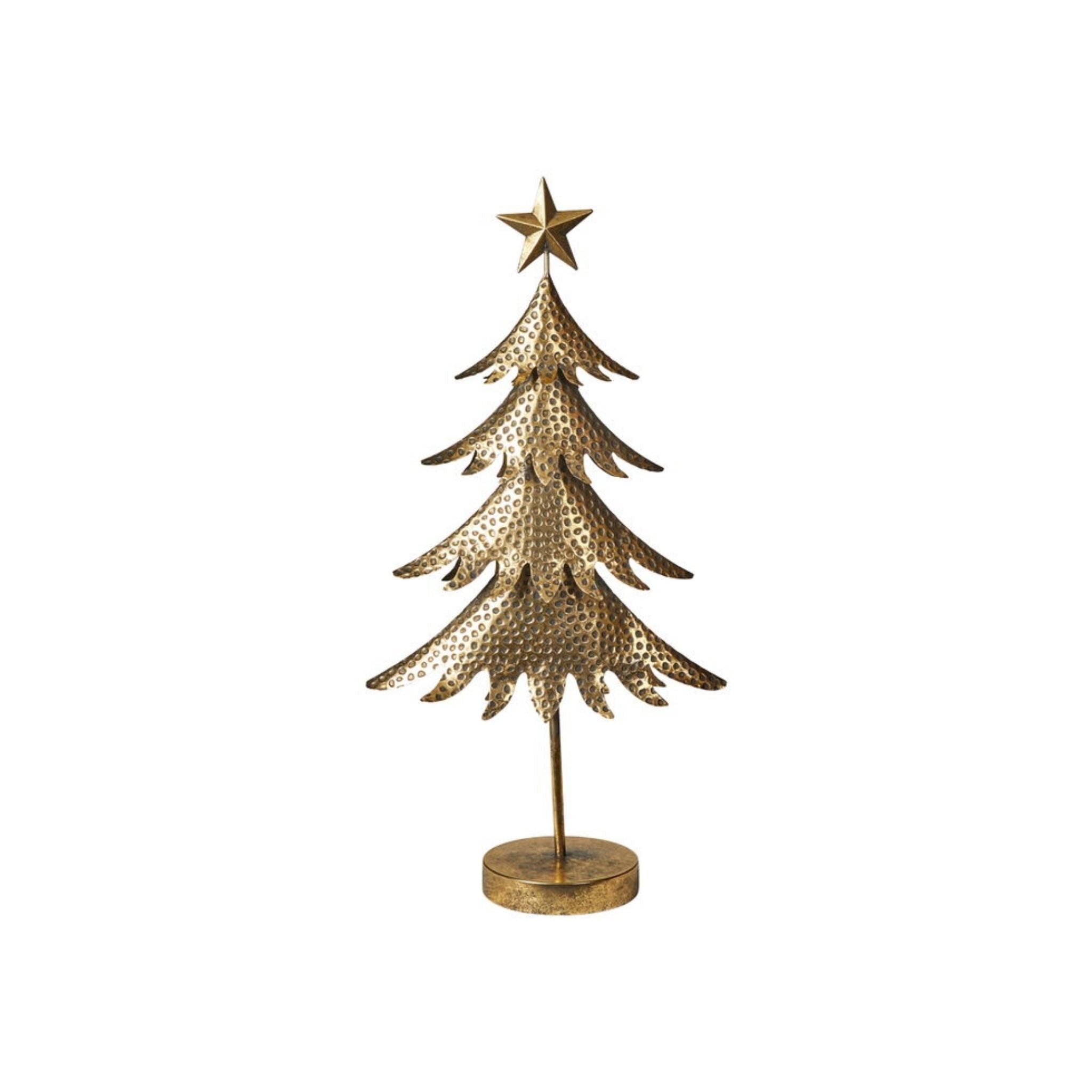 Skab et elegant og festligt fokuspunkt med dette juletræ i metal i antik guld med smuk topstjerne. Træet fås i to størrelser, så du kan vælge den perfekte variant til dit hjem og tilføje et tidløst juleudtryk.