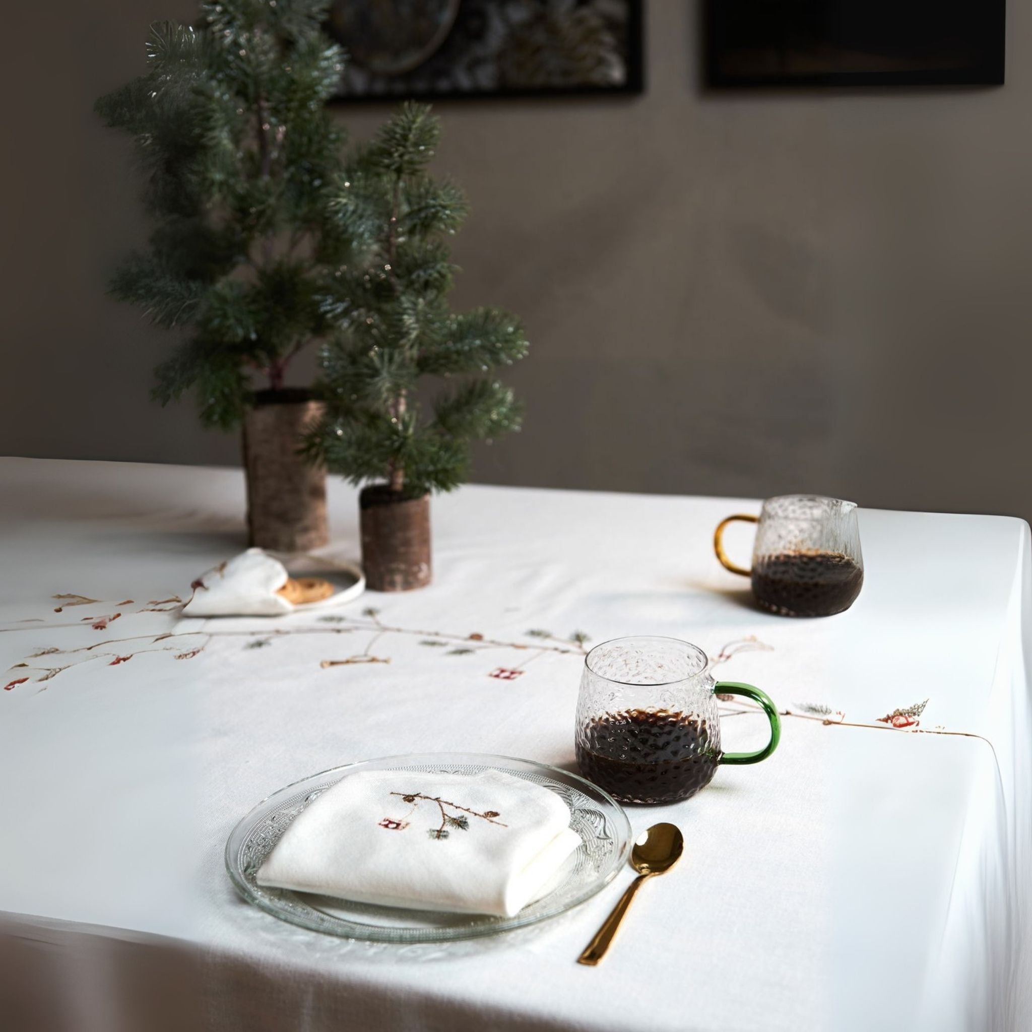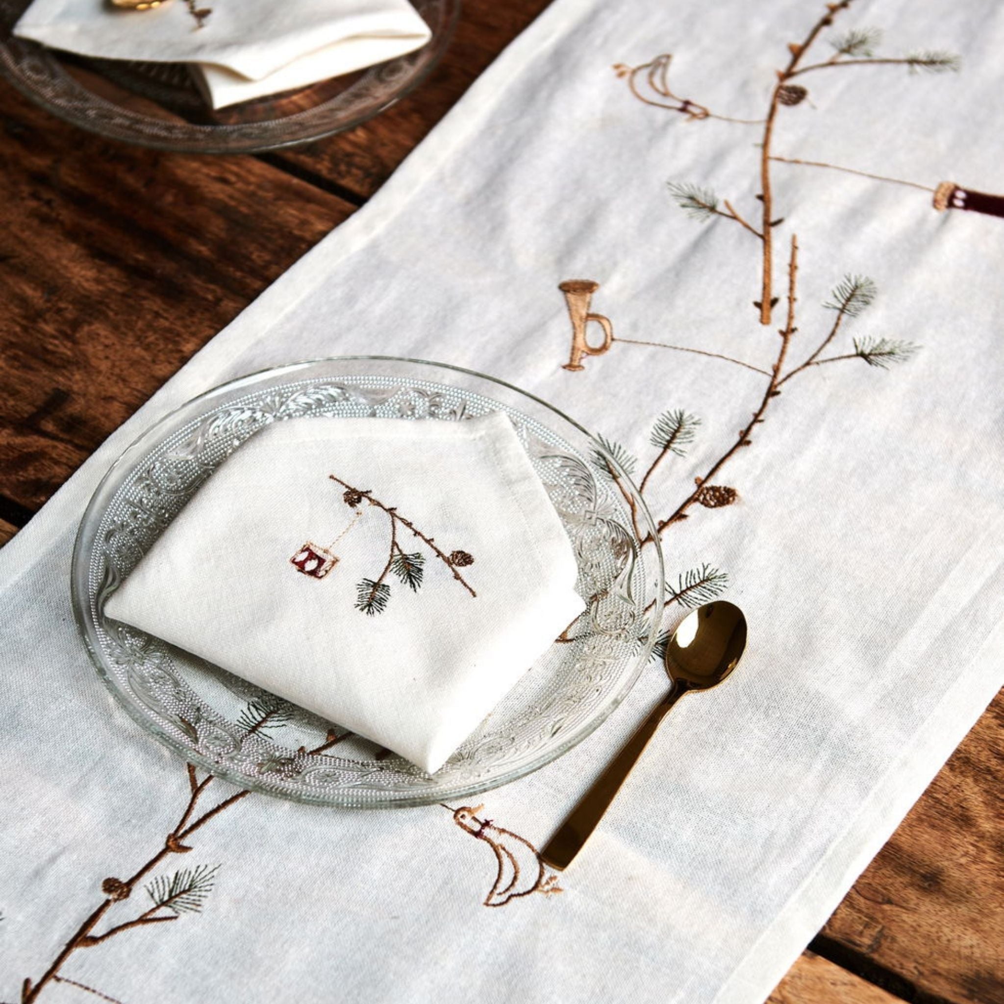 Sæt prikken over i'et i din borddækning med disse skønne mundservietter, med smukt og romantisk jule broderi.