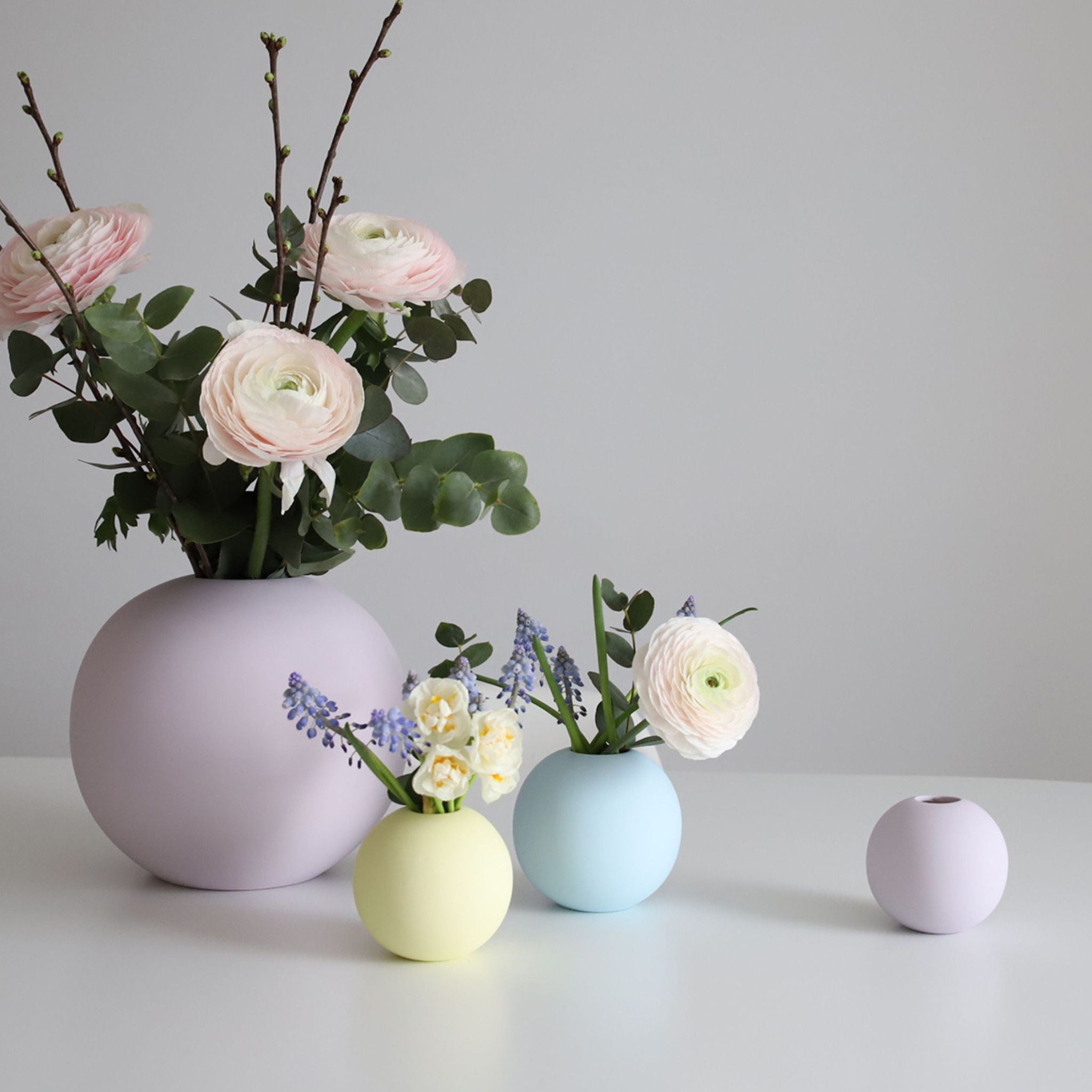 Flot og farverig vase Ball fra Cooee Design. Vasen er fra deres nye sommer kollektion, der tilføjer en frisk farve til indretningen. Vasen er lavet i et stilrent og nordisk design, som er håndlavet hvilket gør den helt unik. Vasen kan både stå for selv, men er også rigtig flot sammen med andre produkter fra Cooee Design. Vasen fås i 3 forskellige størrelser og flere farver. Mål: 8 cm