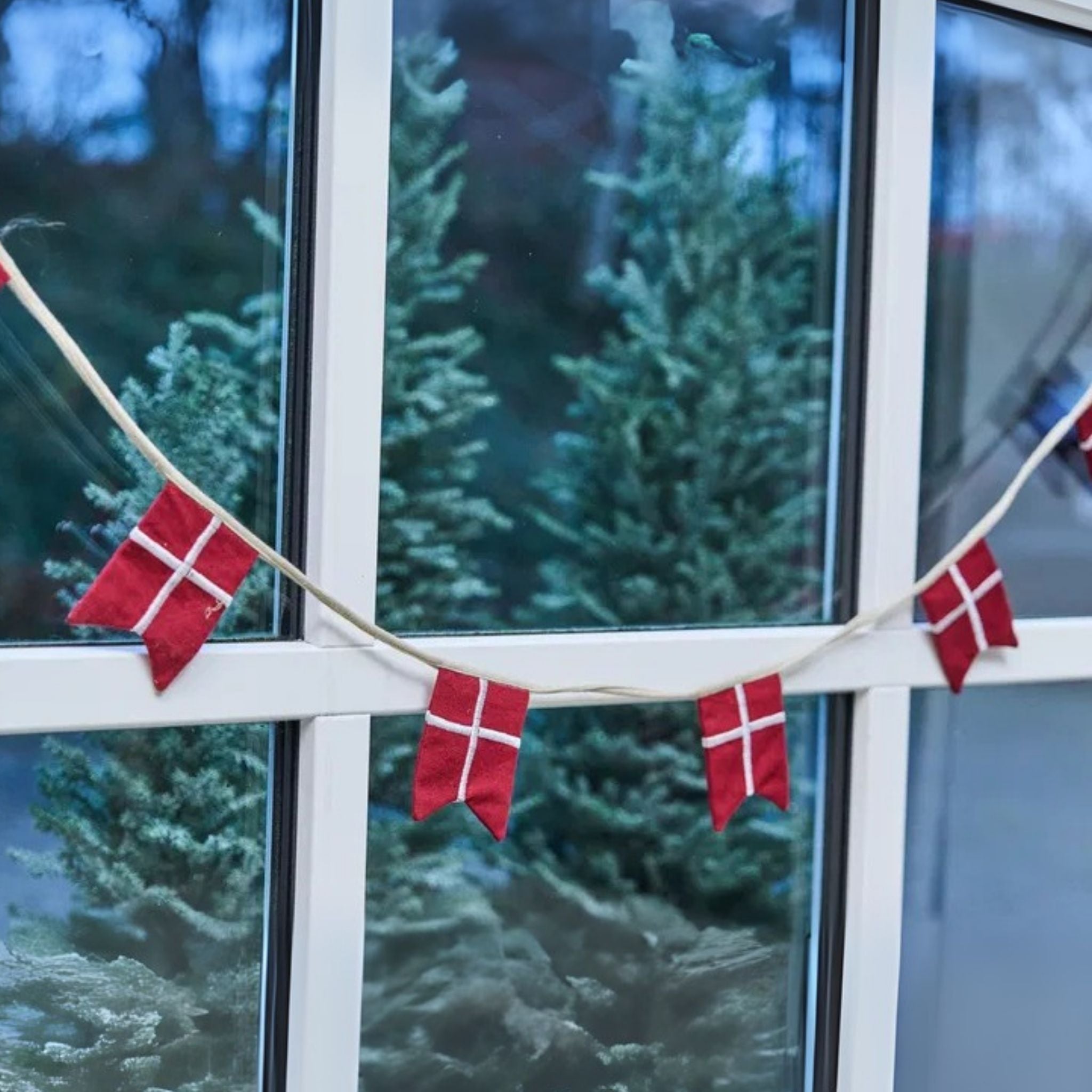 Skab festlig stemning med en klassisk flagranke med otte store danske splitflag, perfekt til højtider, fødselsdage og fejringer, hvor tradition og hygge skal være i centrum.